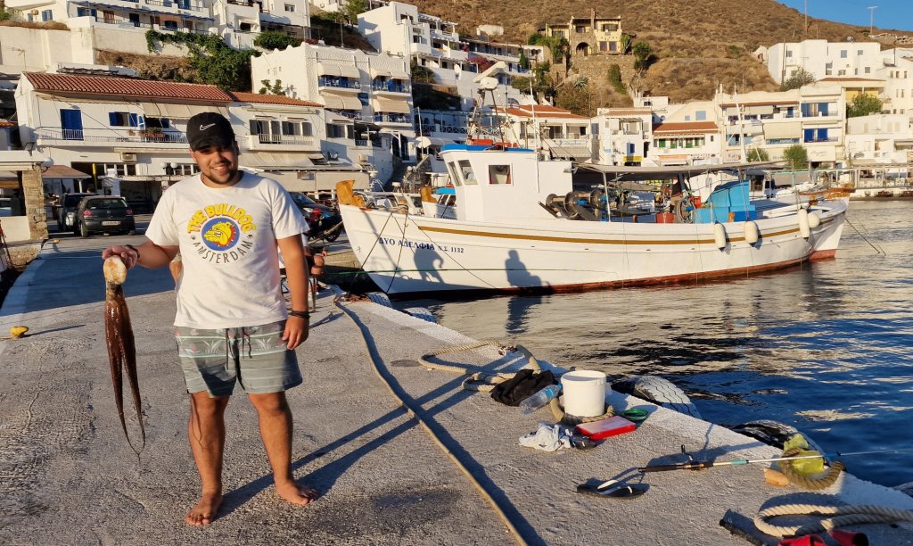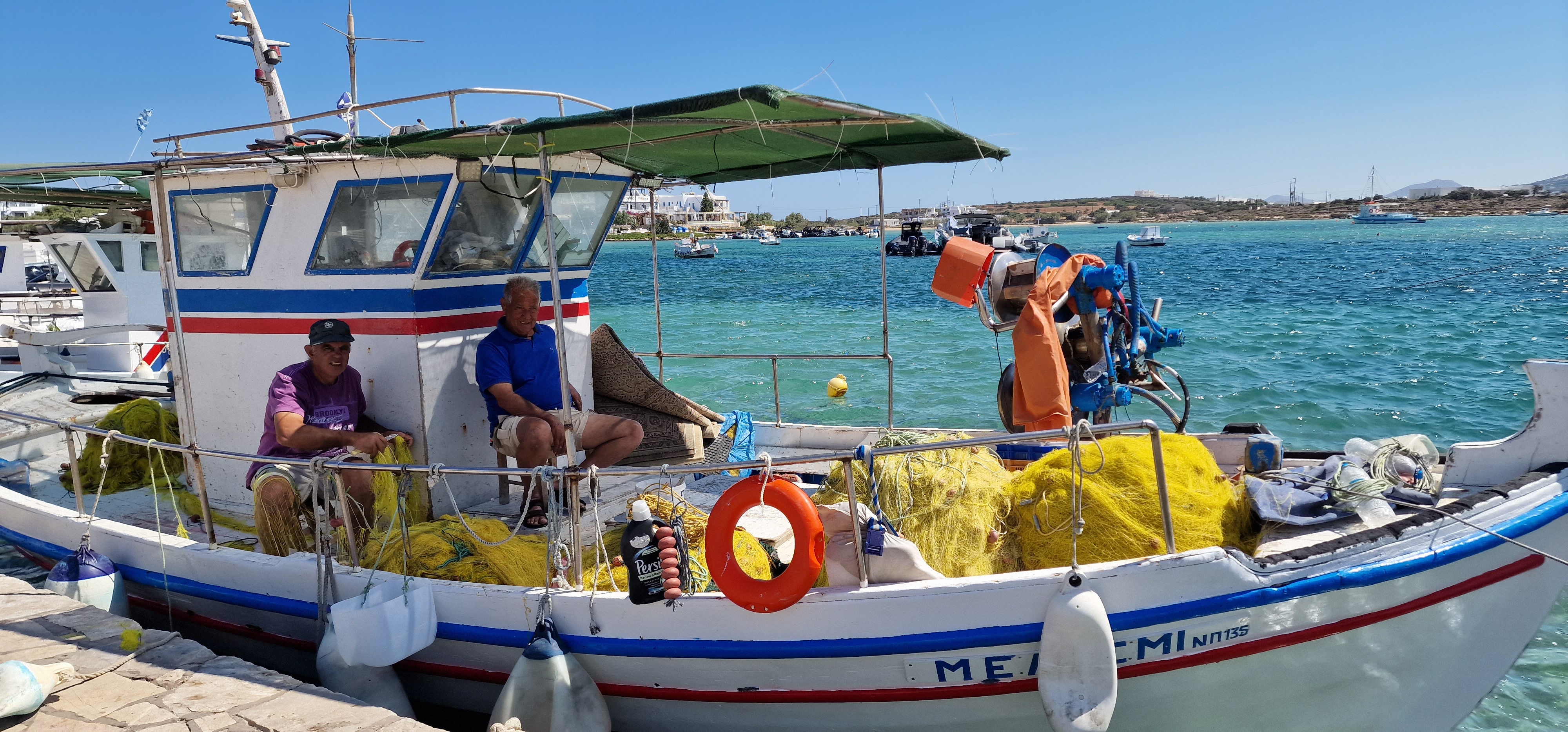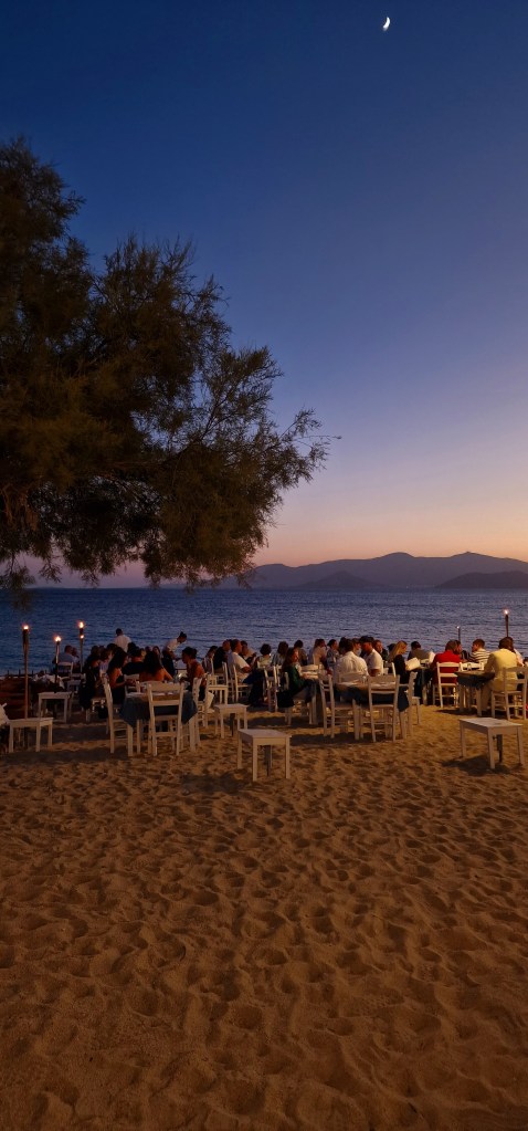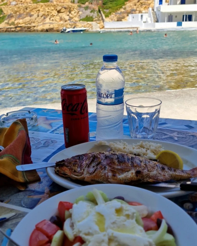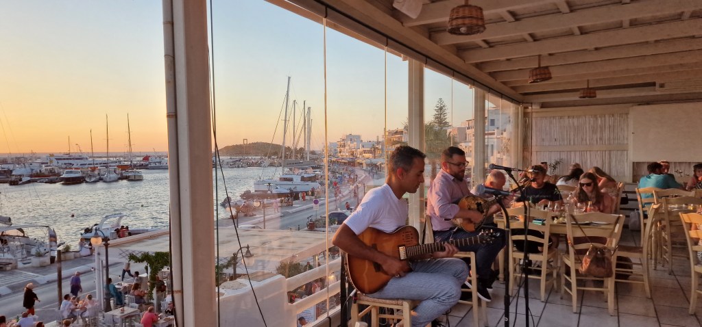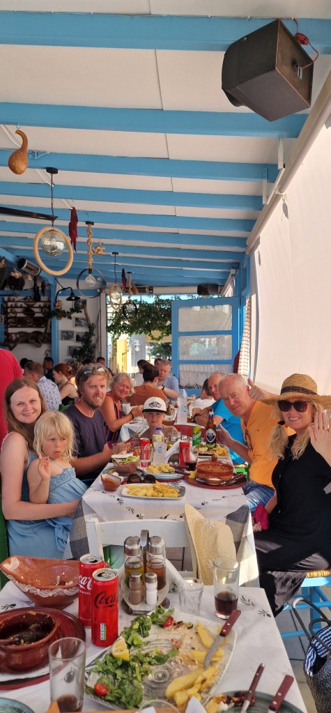 Vi äter tidig kvällsmat i Naoussa’s pittoreska hamn…..👇