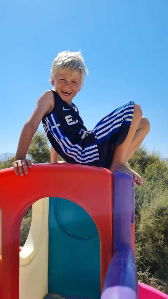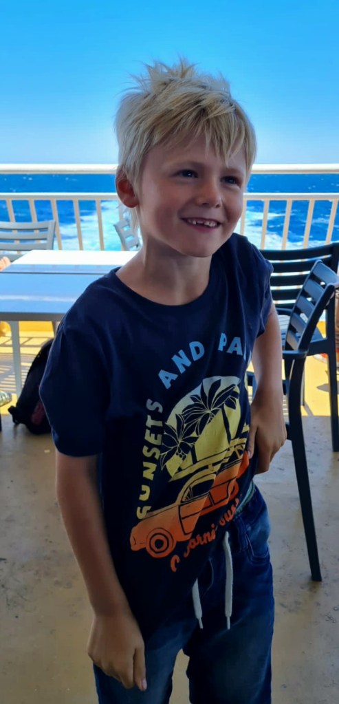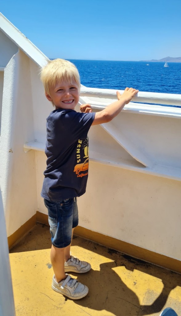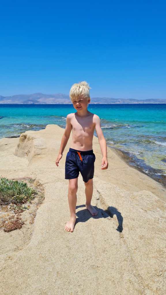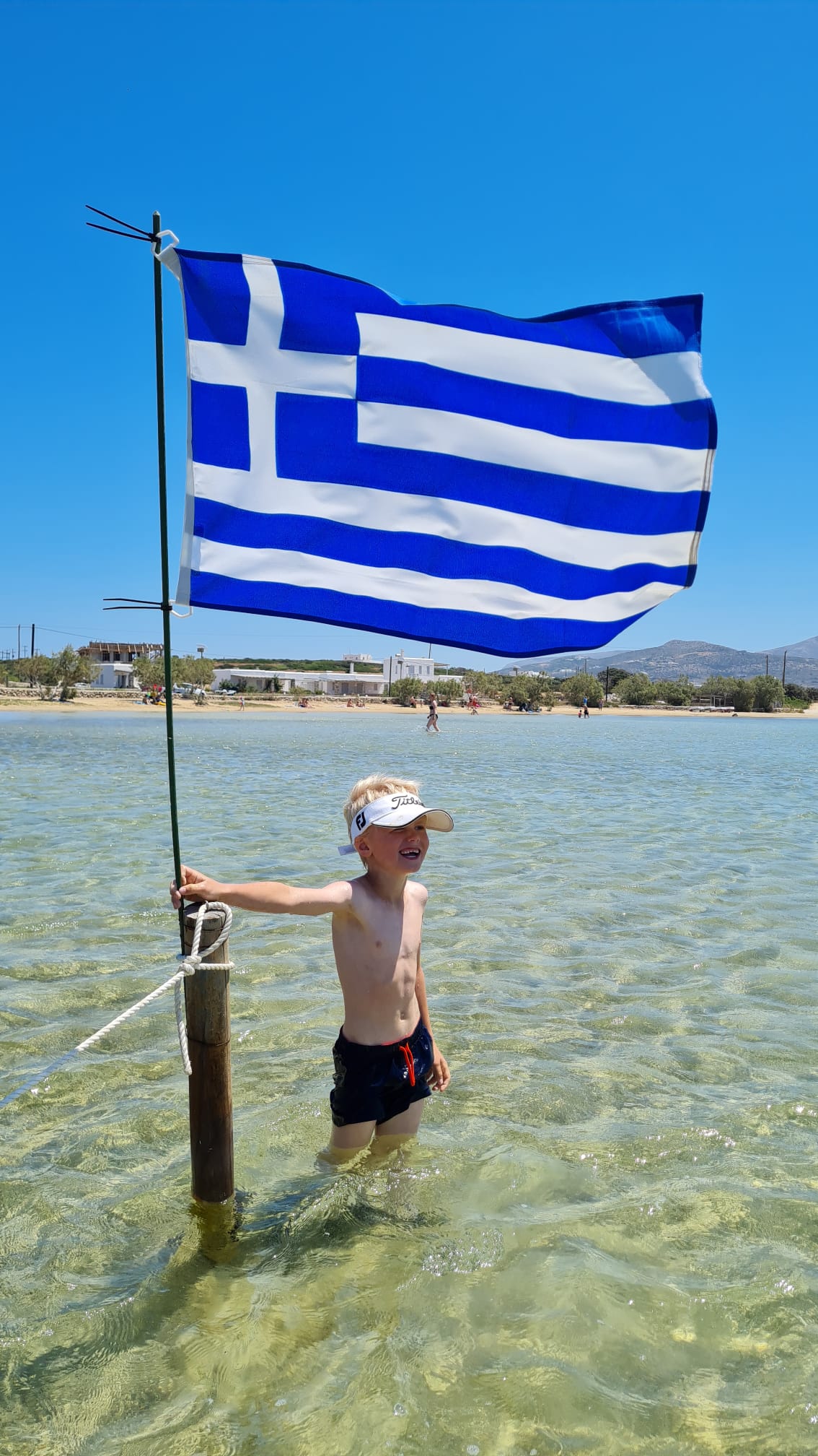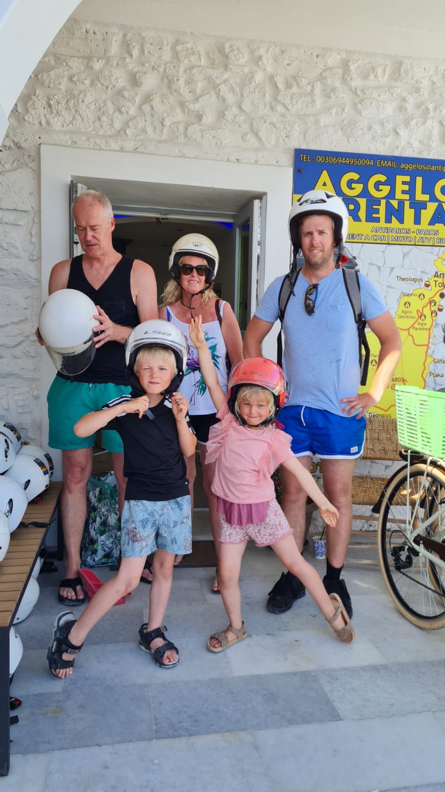 Vi fortsätter alltså med barnbarnen o familjen från Koufonissi mot ön Paros & där möter vi upp ytterligare 1 son som äntligen också gått på semester & ansluter även han med inrikesflyget från Aten till Paros….