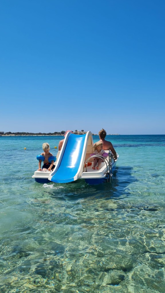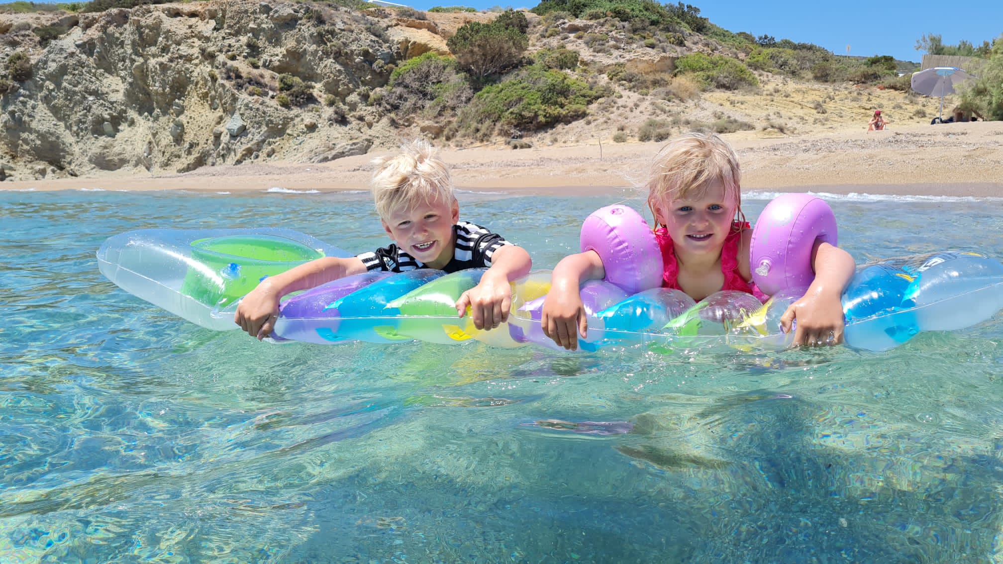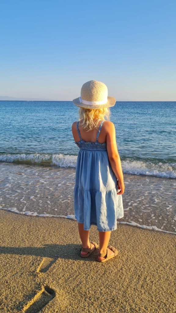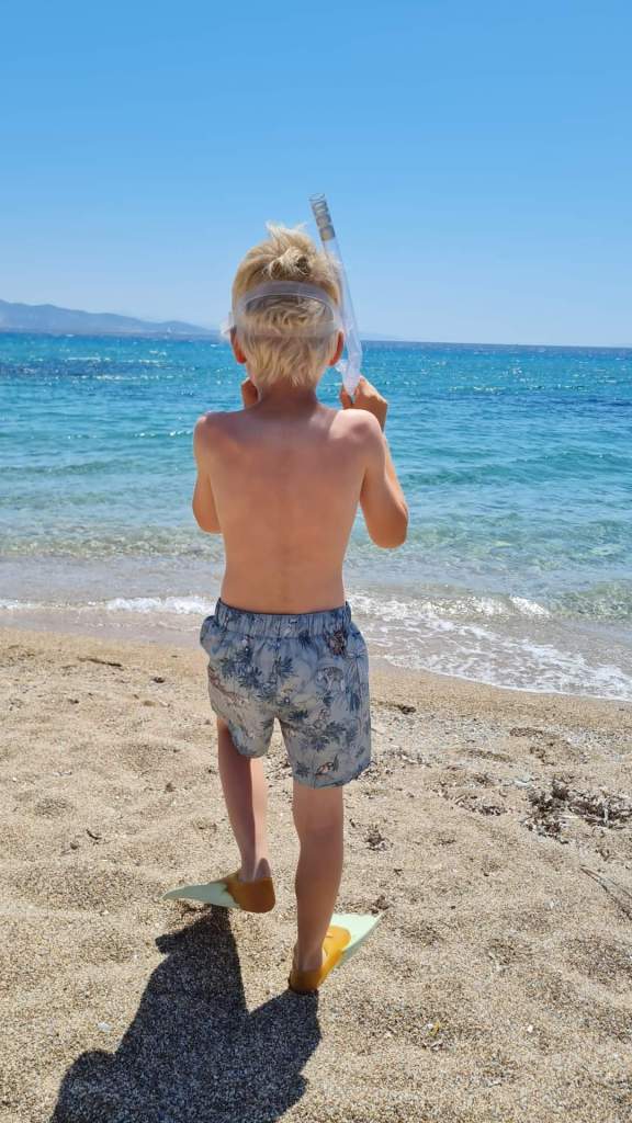 Då promenerar barnbarn med Yiayia (farmor) och mamma bort till Punda Beach & testar den…..👇