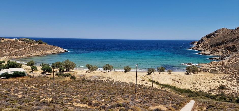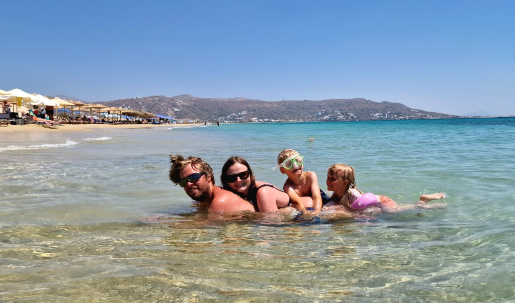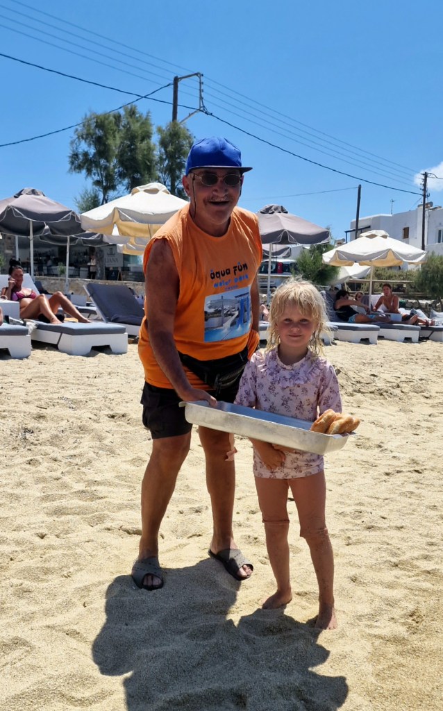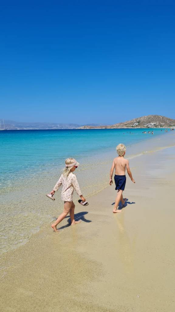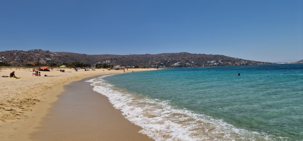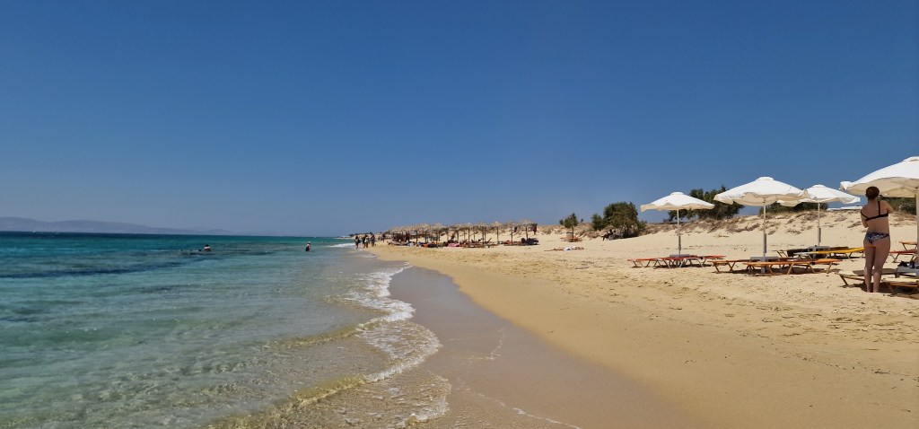 Stranden är känd o ligger strax intill den populära turistorten Naoussa, vilket innebär myyycket folk…..