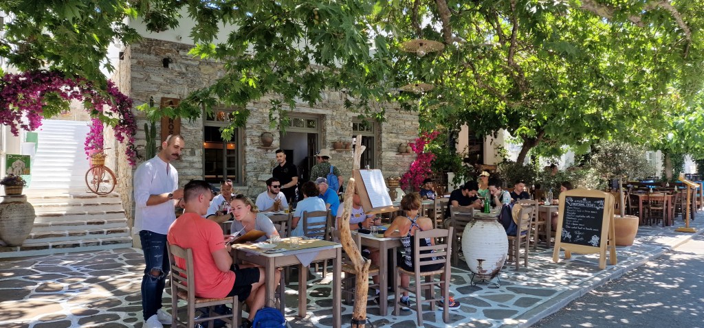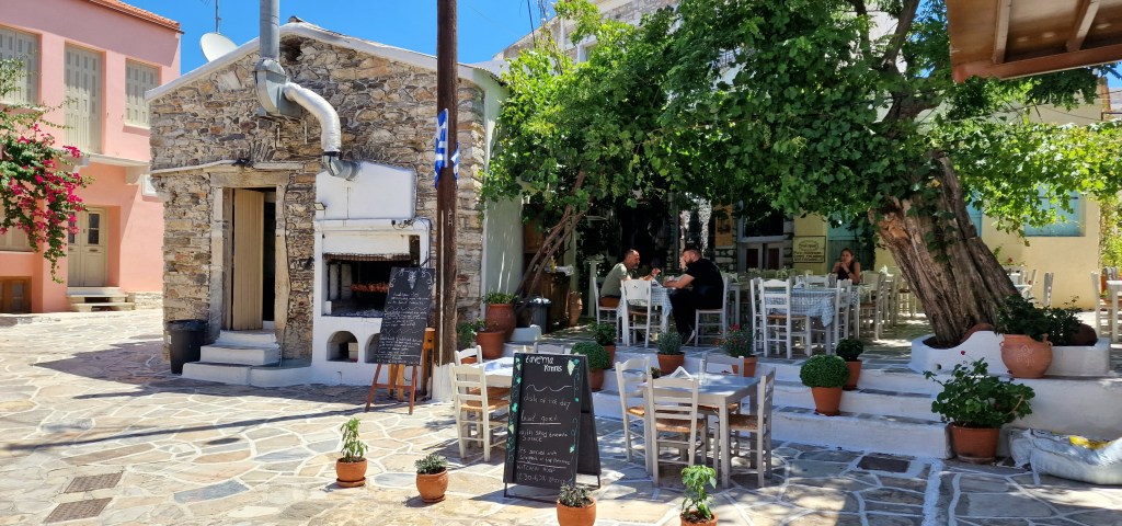 Efter besöket kör vi mot lilla Aliki för att äta lunch…..👇
