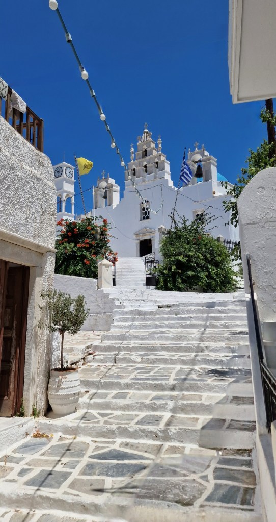 Bergsbyarna på Paros är underbara & vi hade turen att bo knappt 2km och med gångavstånd till underbara lilla bergsbyn Marpissa!!!💙💙💙Byn är precis så som jag vill ha bergsbyar…..ganska tyst – ett virrvarr av vitkalkade små smala gränder- kyrkor och ett par väderkvarnar…….
