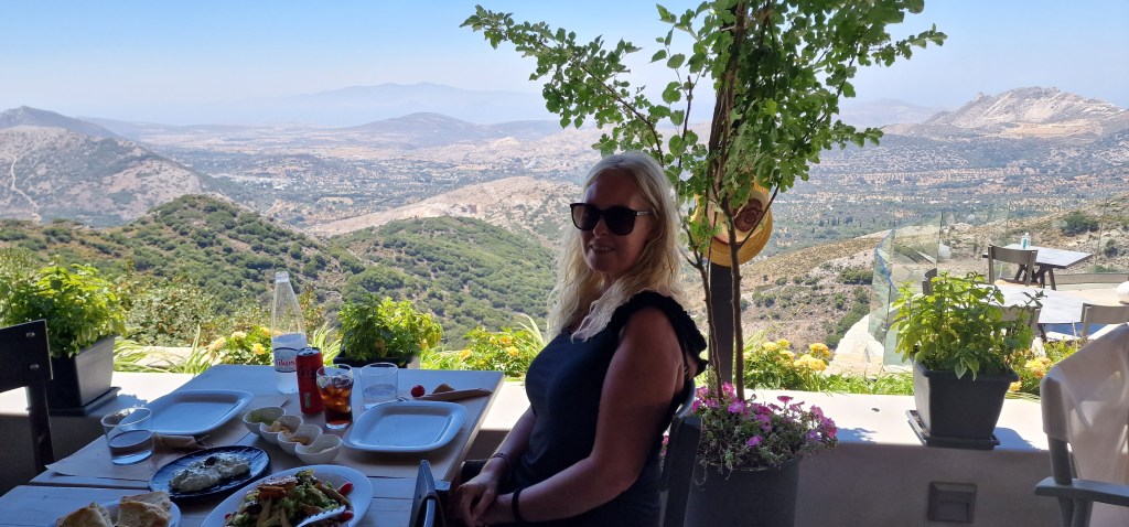 En annan av dagarna hyr vi en 7-sitsig bil/minibuss och ger oss ut på upptäcktsfärd allihopa….först ut blir bergsbyn Lefkes…..👇