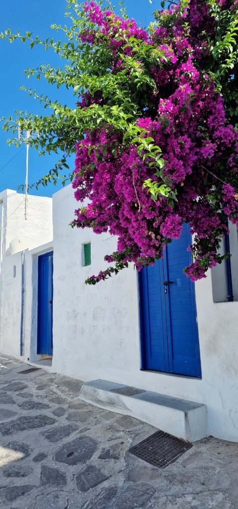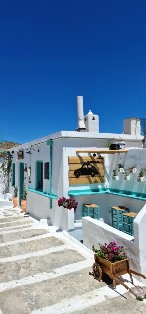 Kontrasterna på ön är stora…..lika flashigt o pittoreskt med vitkalkade gator som dom 2 huvudorterna Parikia & Naoussa visar upp….lika genuint o småskaligt är det ute på landsbygden!!💙