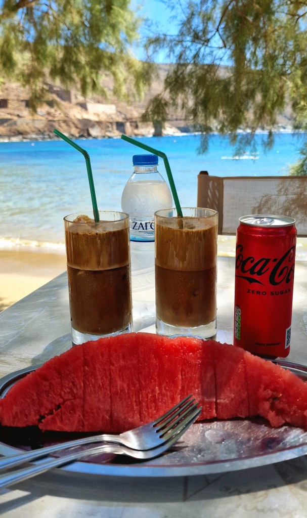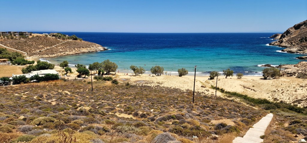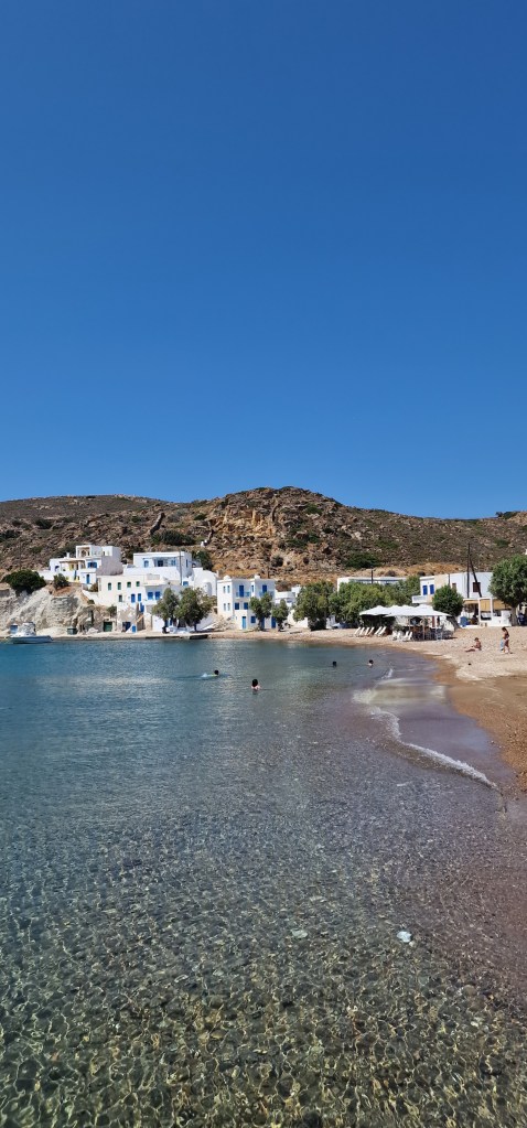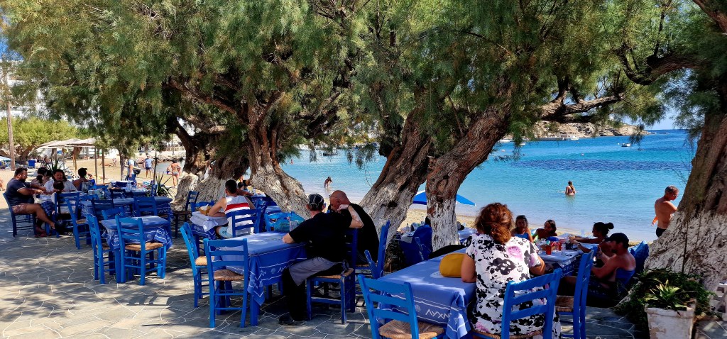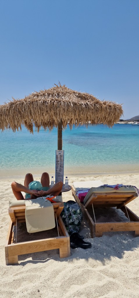Ny dag & nya äventyr…..nedan den lilla delen av Logaras beach som är organiserad & med ett fåtal tavernor….👇