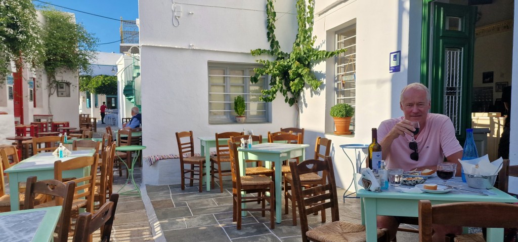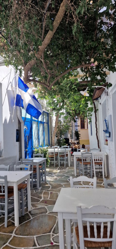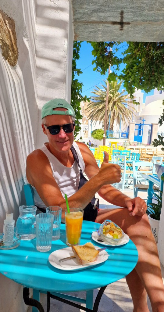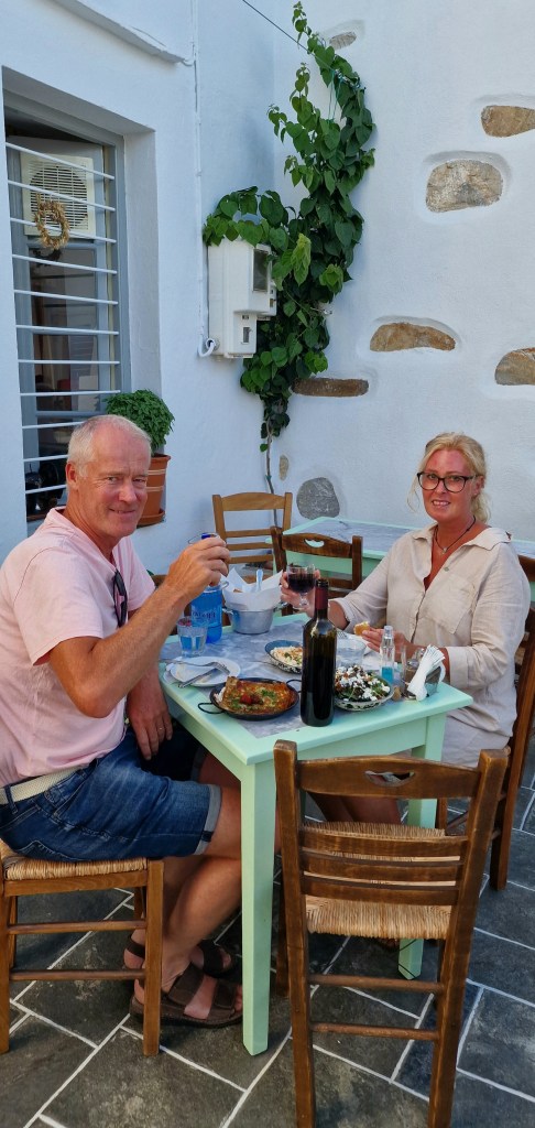 Nu har barn och barnbarn återvänt hem tidigt tidigt i gryningen & det känns sååå otroligt tomt😥Vi väljer att flytta sista natten in till hamnstaden ”Parikia” för att ha promenadavstånd imorgon till båten som ska ta oss vidare mot ön ”Astypalia” dit Håkan längtat tbx sen vi var där för 8år sen!!!