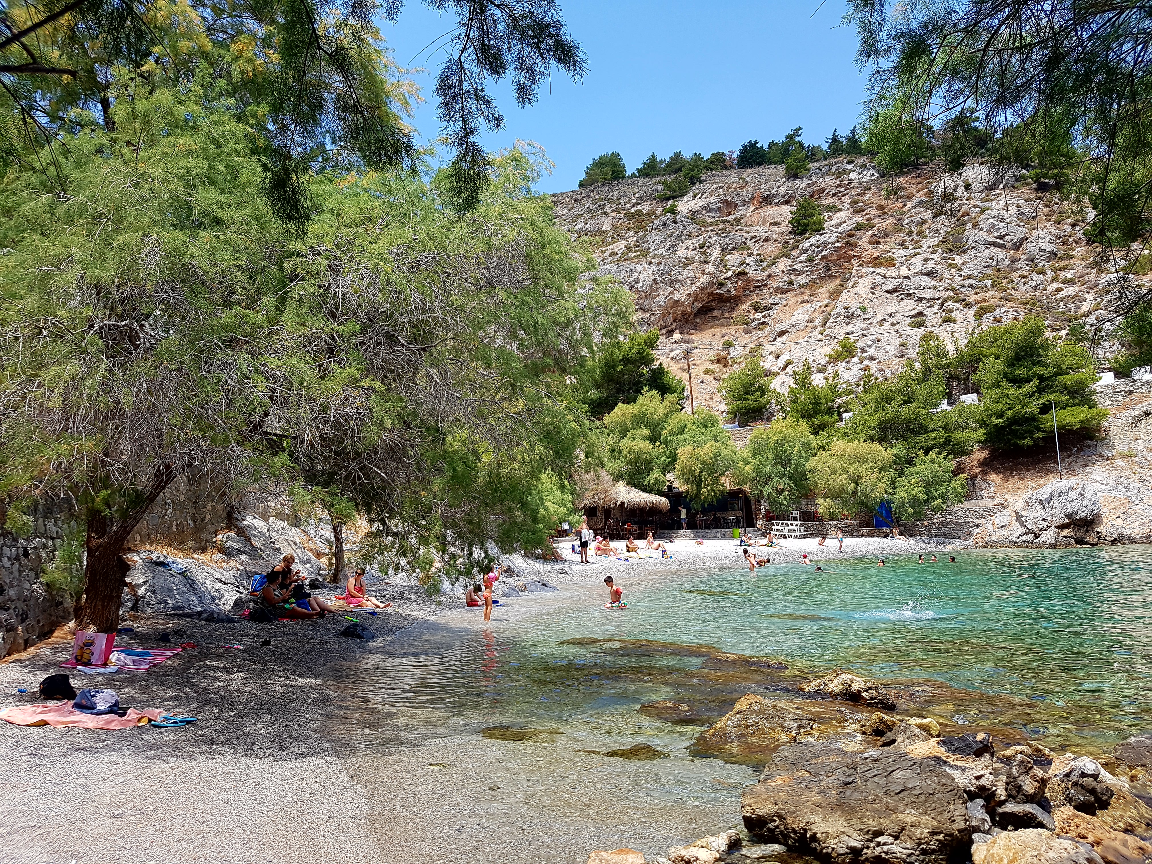 Något svettiga åker vi bort till Agios Konstantinis beach efter besöket uppe på Kastro & blir där resten av dagen…..👇