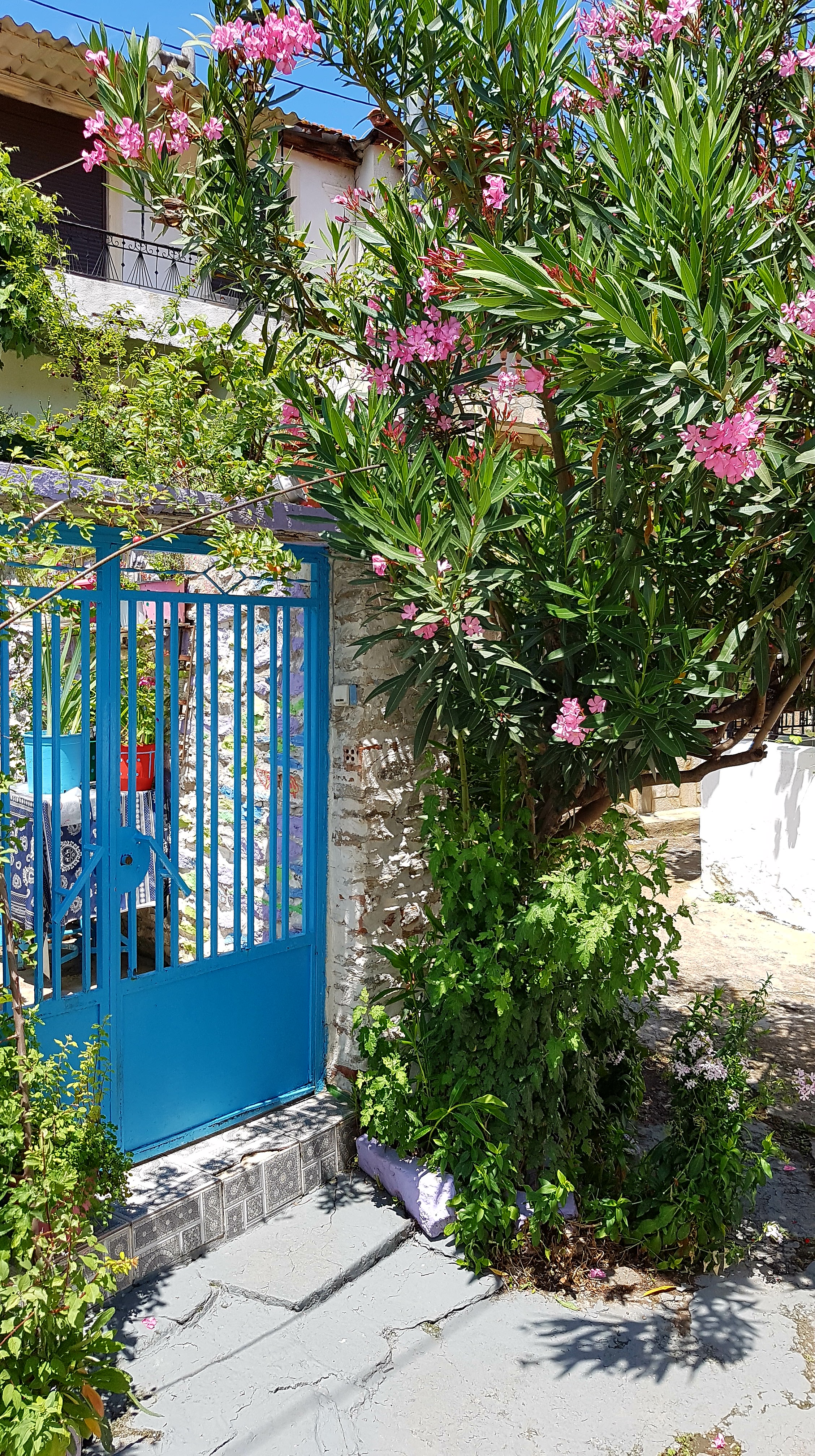 Efter vår lilla walkabout i hamnen inkluderat varsin ”Frapp’e” så börjar vi traska upp i byns virrvarr av alla gränder……