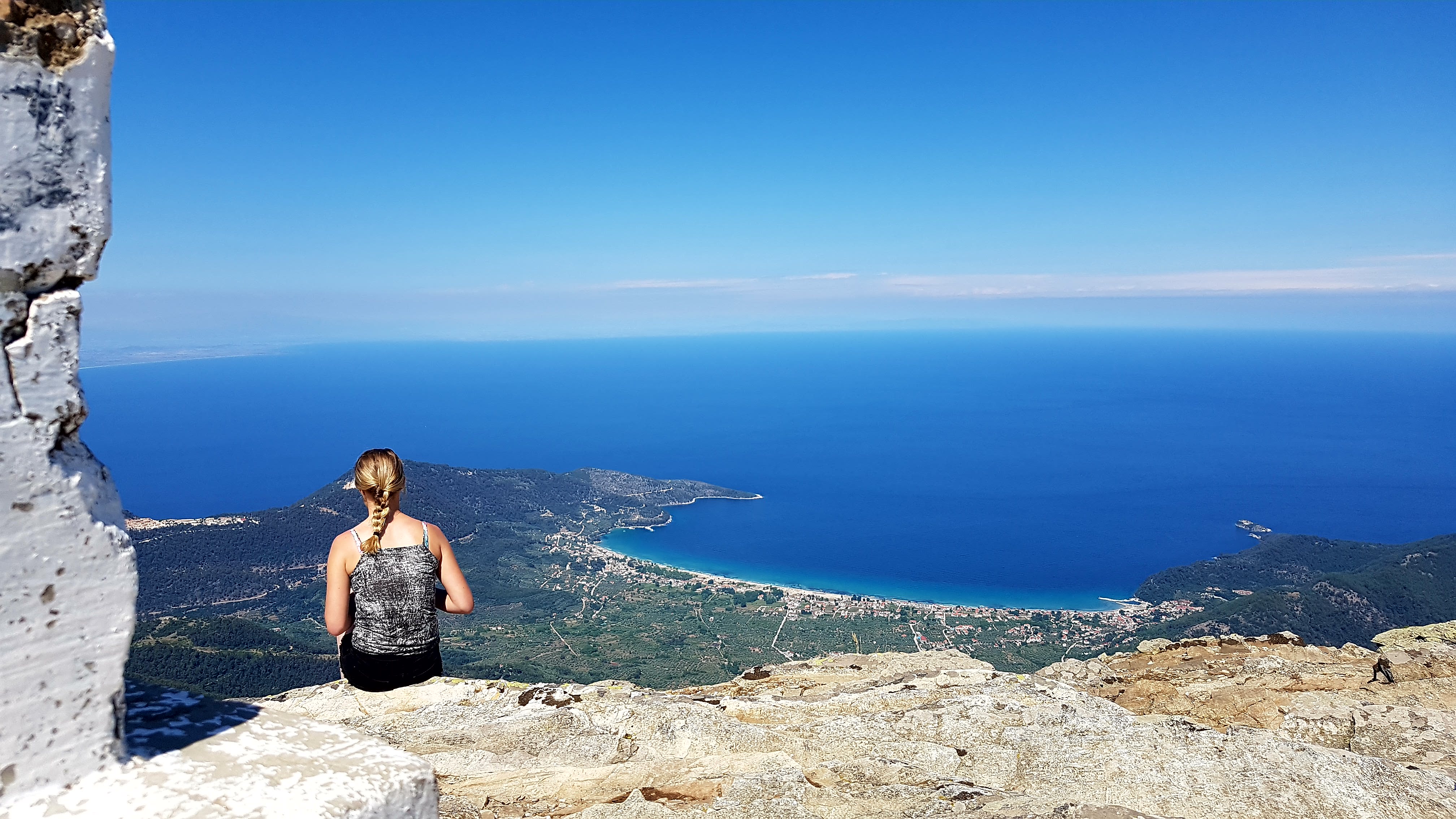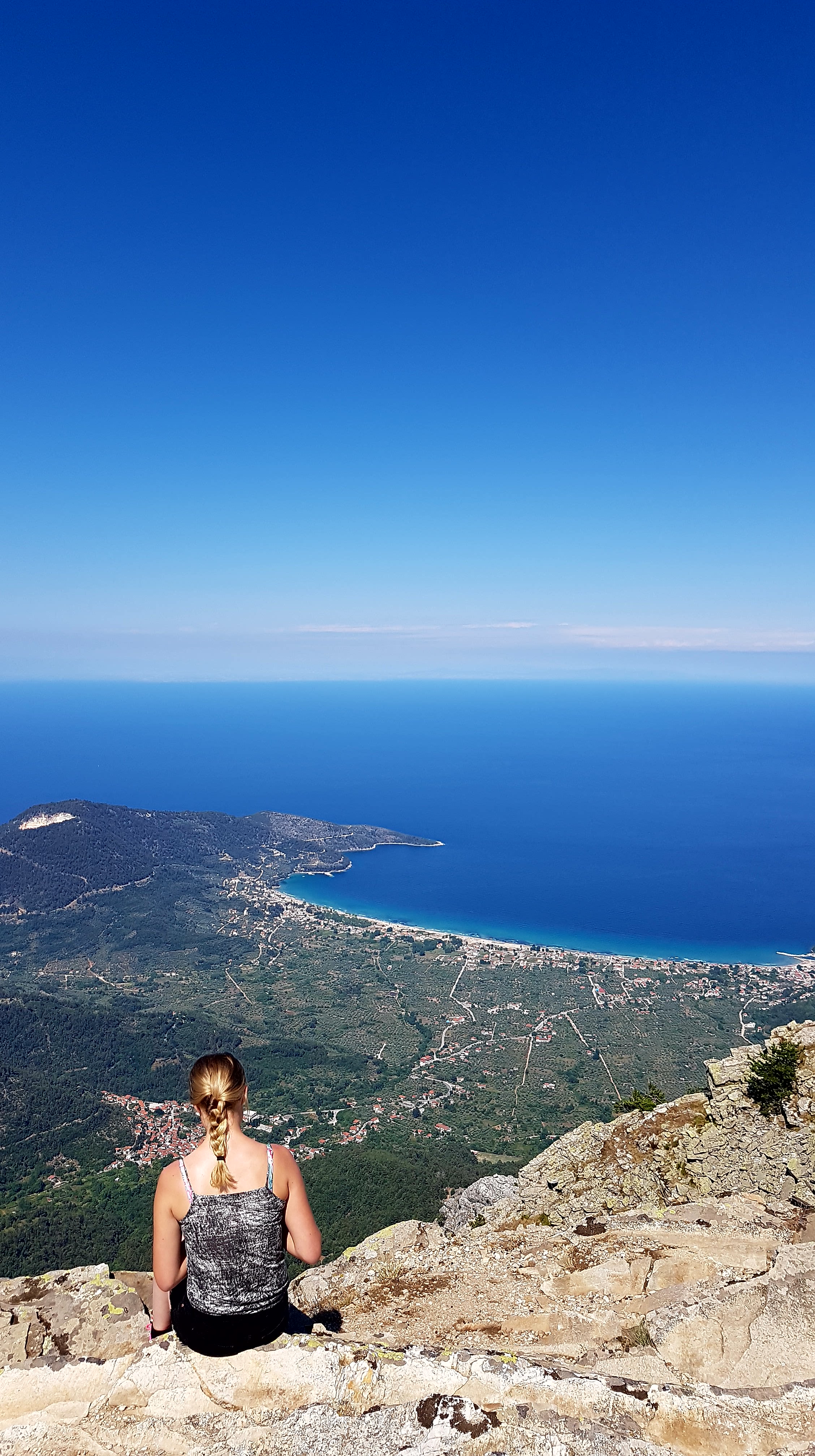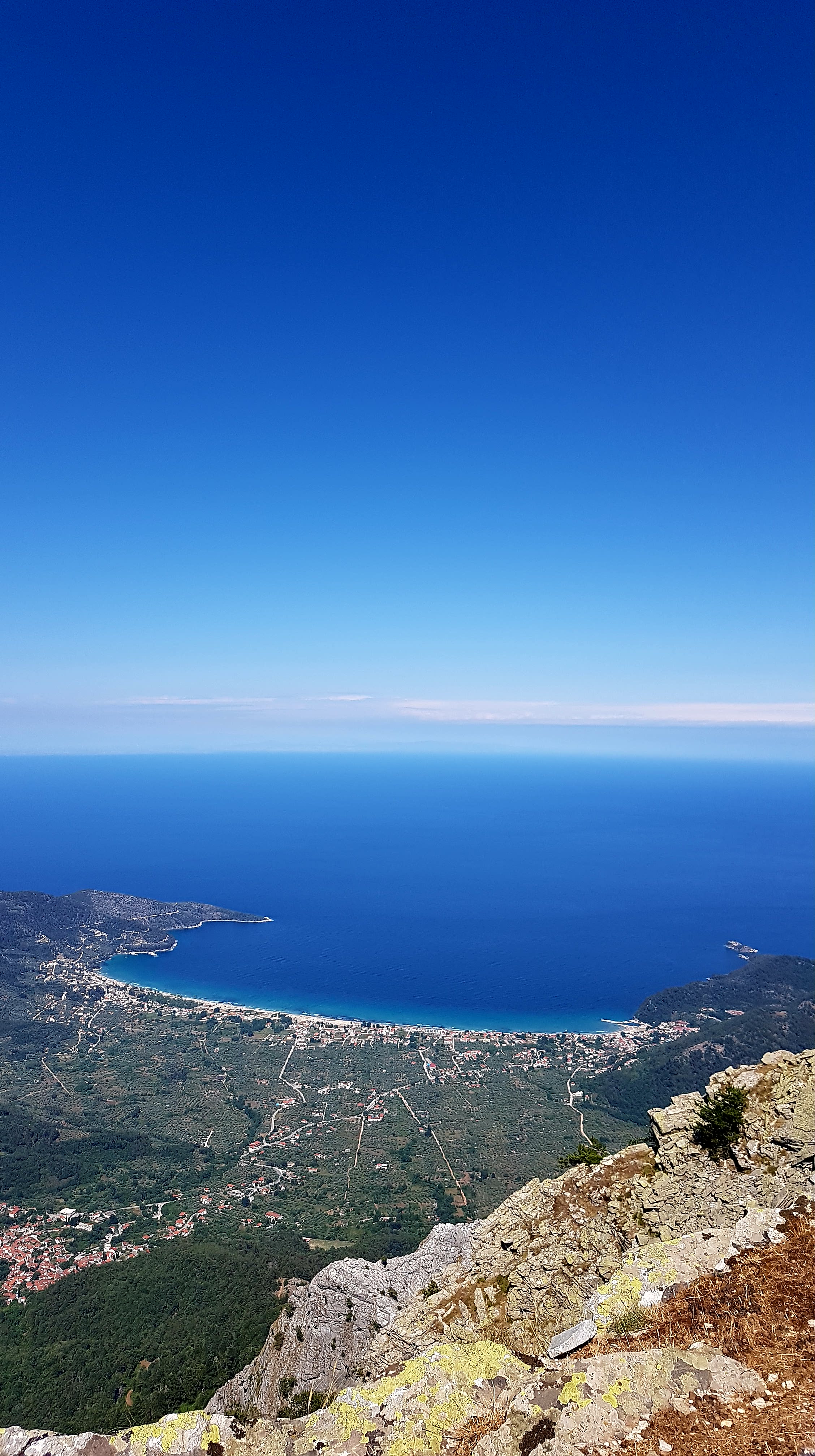 Uppe på Thassos högsta berg Ipsaron 1206 m.öh…hela golden beach viken nedanför!!!