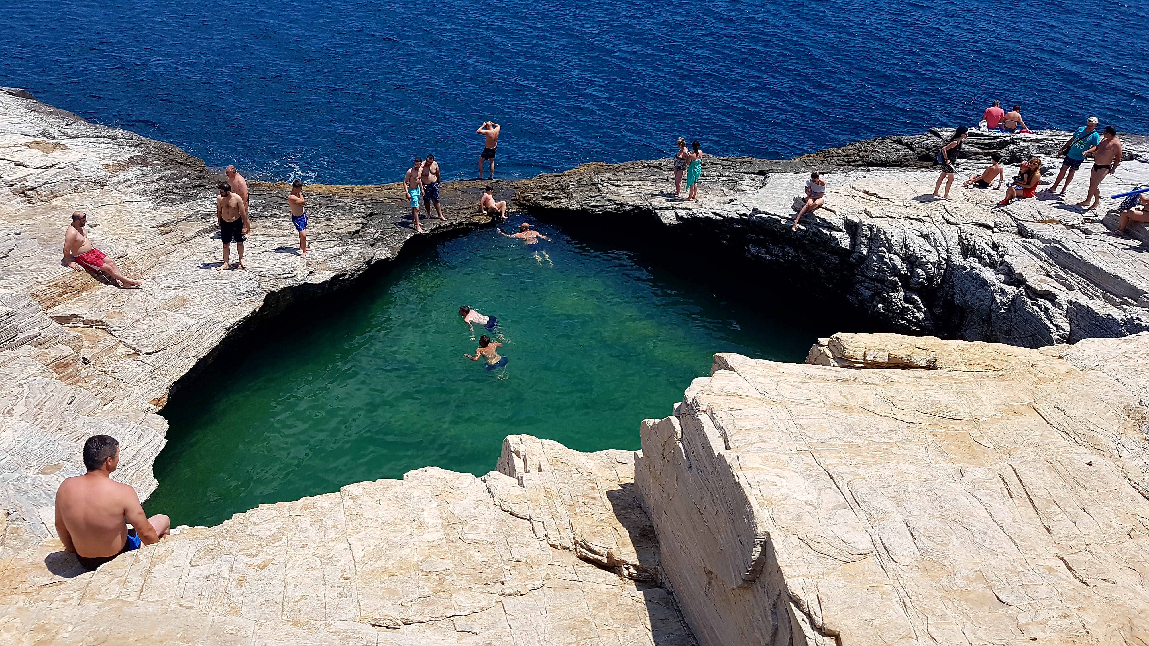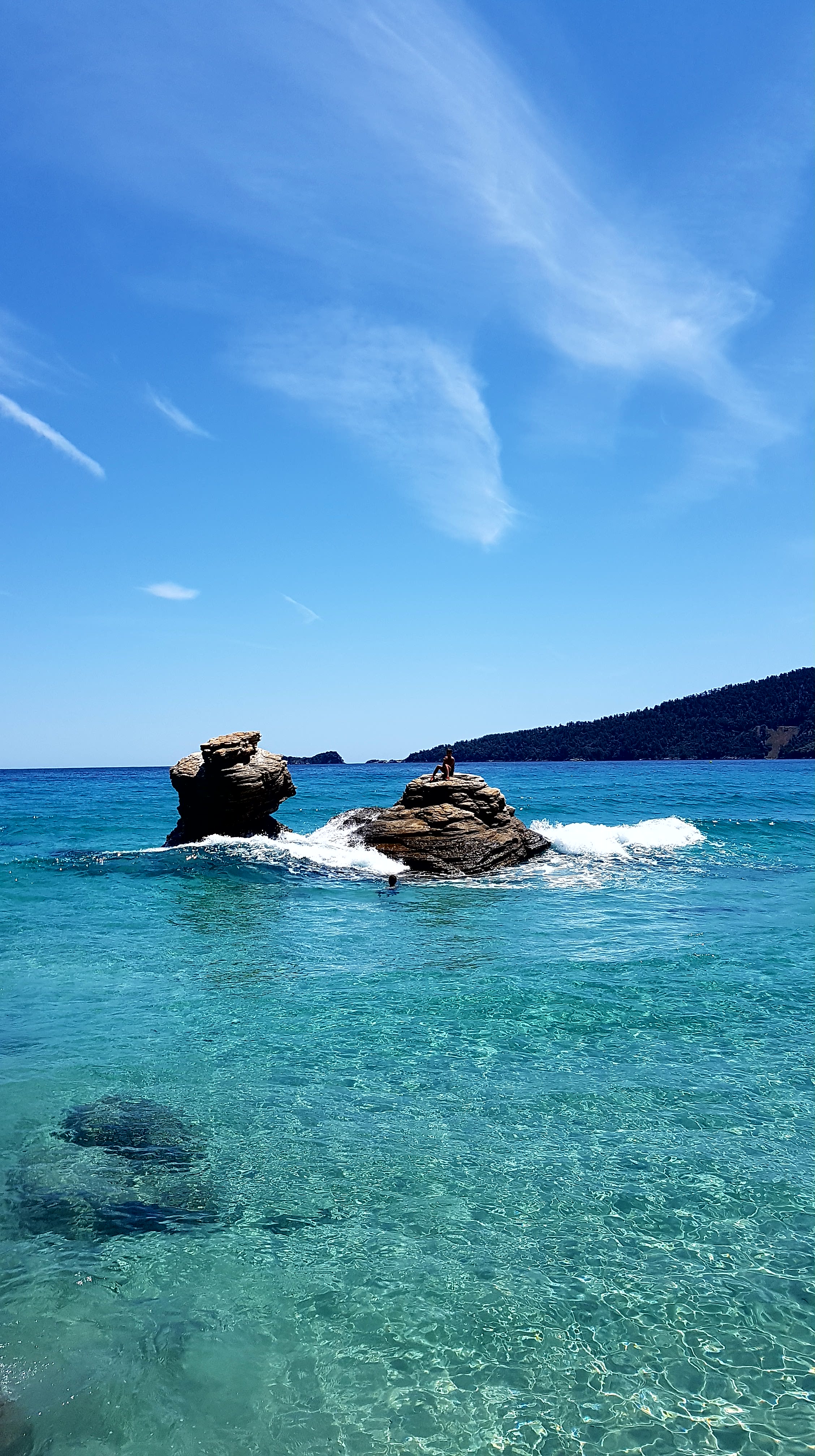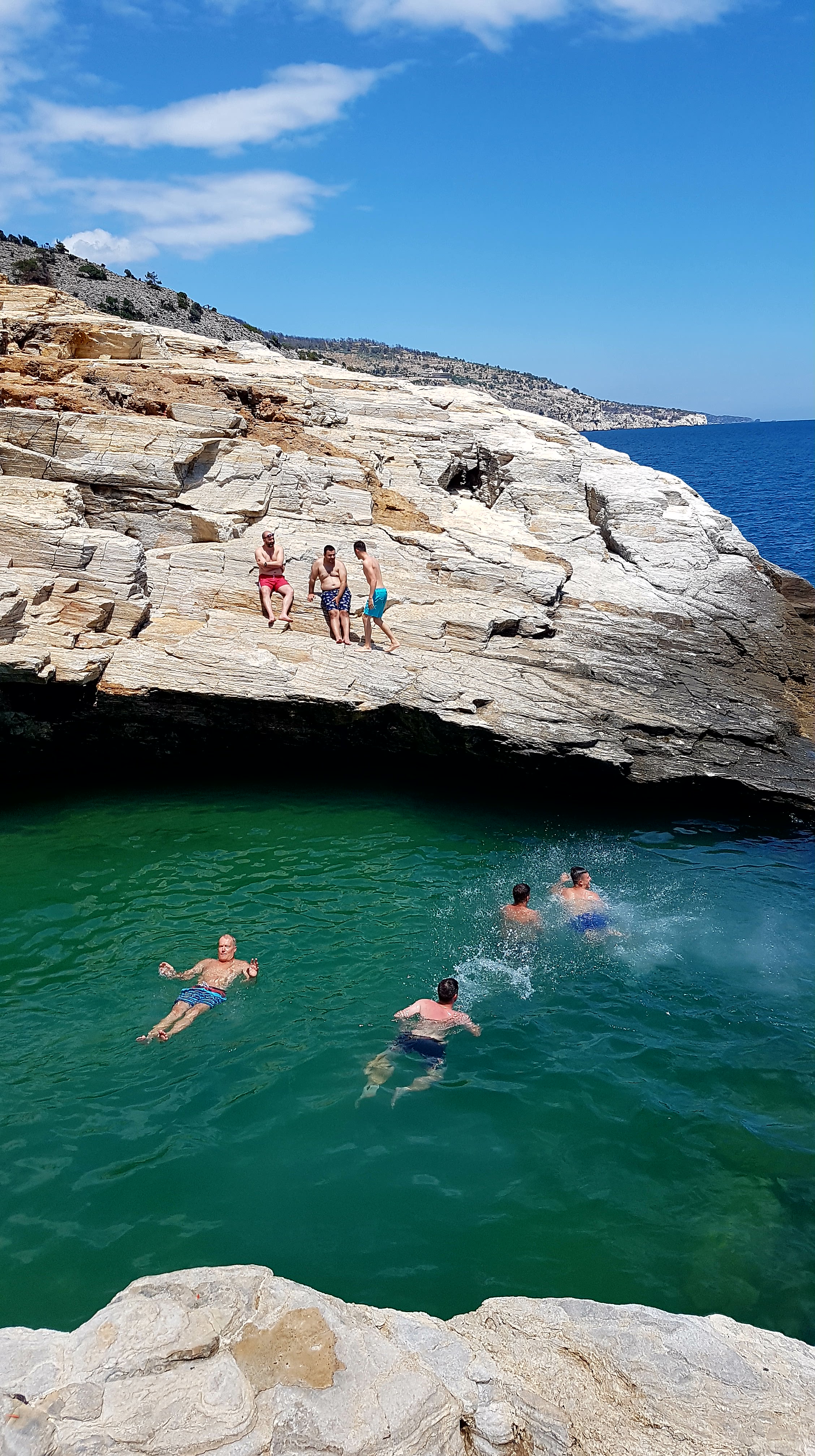 2008 bröt jag min handled & fick hjärnskakning riktigt illa……vi hade hyrt vespor & skulle tuffa runt på ön i 3 dagar!! Vi äter en pita gyros till lunch i den lilla turistorten ”Potos”, det är i Augusti månad & sjukt varmt, så jag vill svalka mig med ett dopp i havet innan vi far vidare!!🌞🌞🌞Väl nere på stranden bestämmer jag mig för att gå i från klippan istället för från sandstranden och därav slippa köra sandig resten av dagen!!