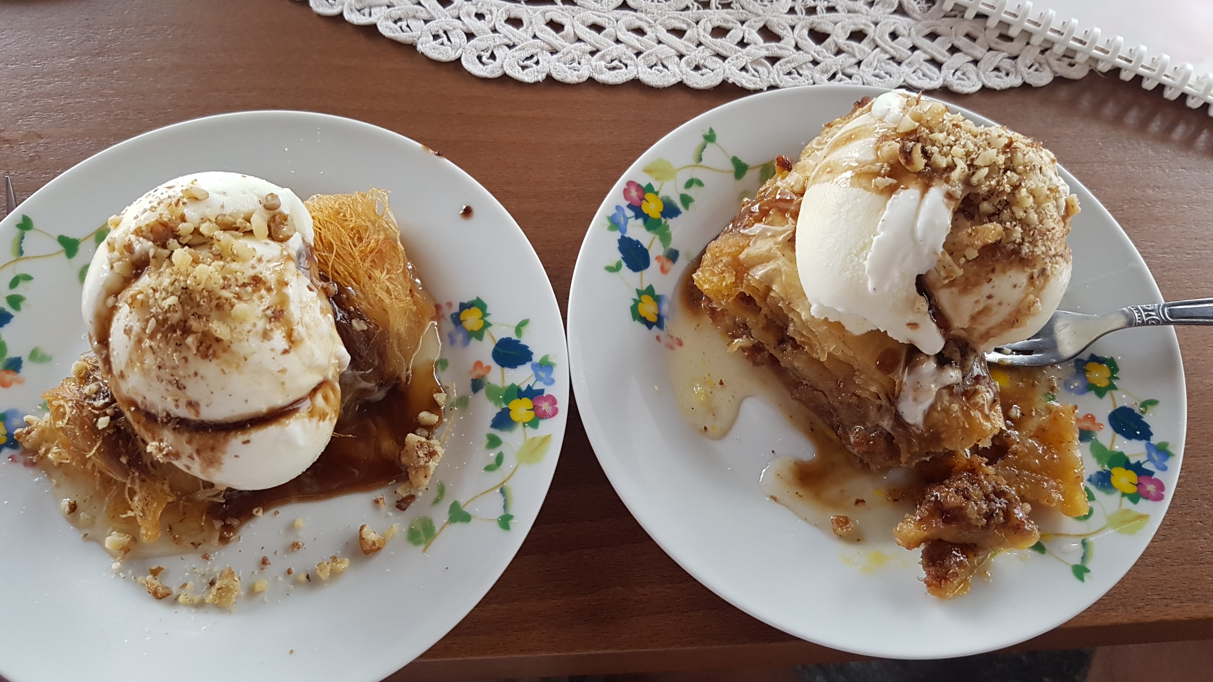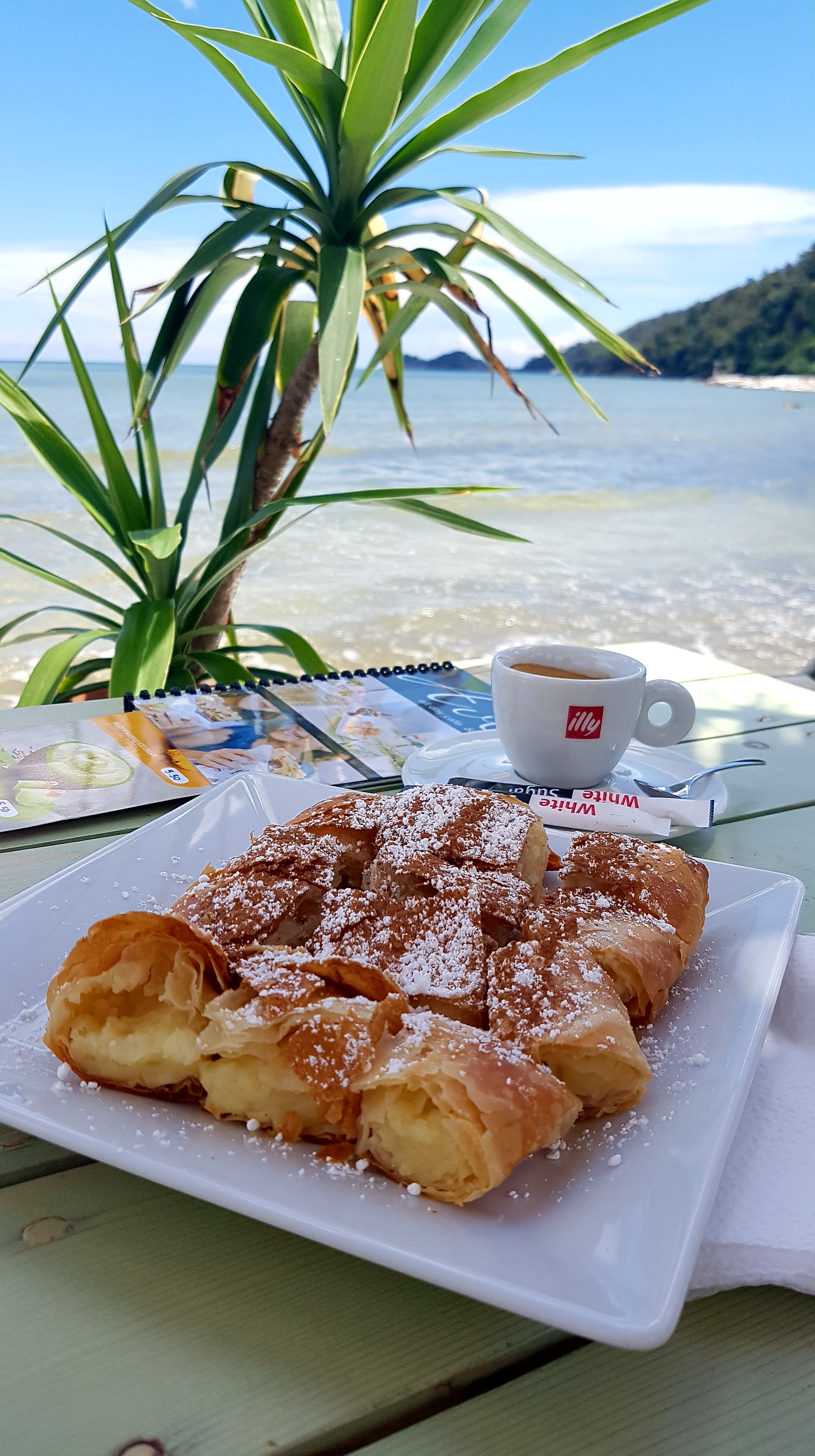 Hur som helst så börjar vi 1a morgonen med Bougatsa frukost på det lilla torget i Myrina👇resten av veckan köpte vi hem från det lilla bageriet 26 steg från vårt boende!!!!(aldrig någonsin tidigare haft så nära till ett bageri😉så det blev en del gott)