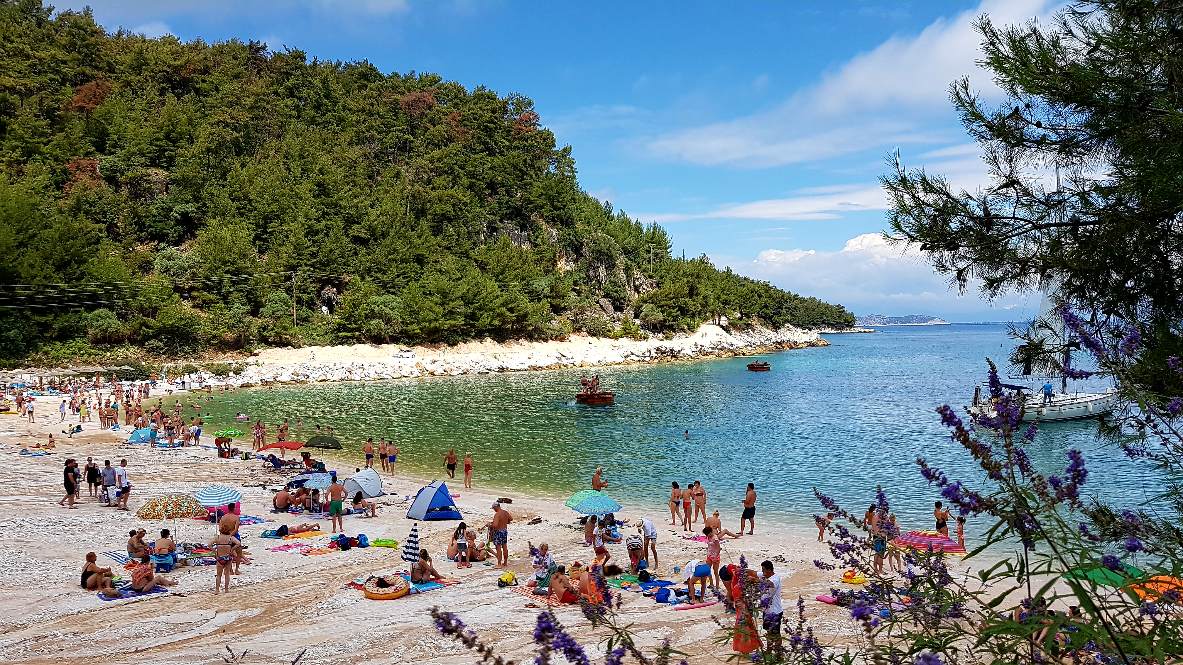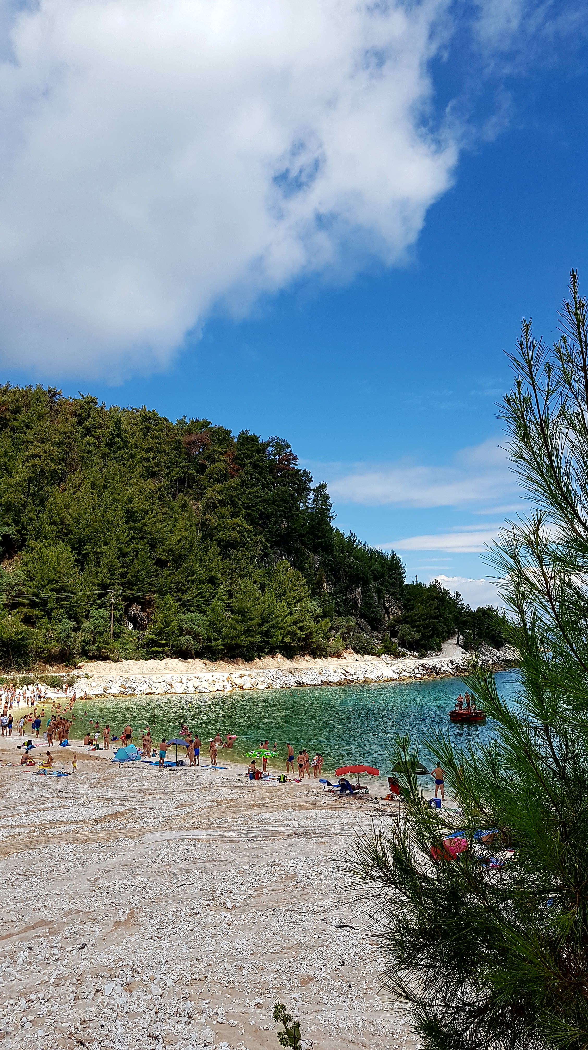 Vi bodde vår vecka i populära turist orten Petra….här hittar ni en lååång grovkornig sten strand med kristallklart vatten & massor av pinjeträd. Och en mängd av trevliga familjetavernor såklart!!