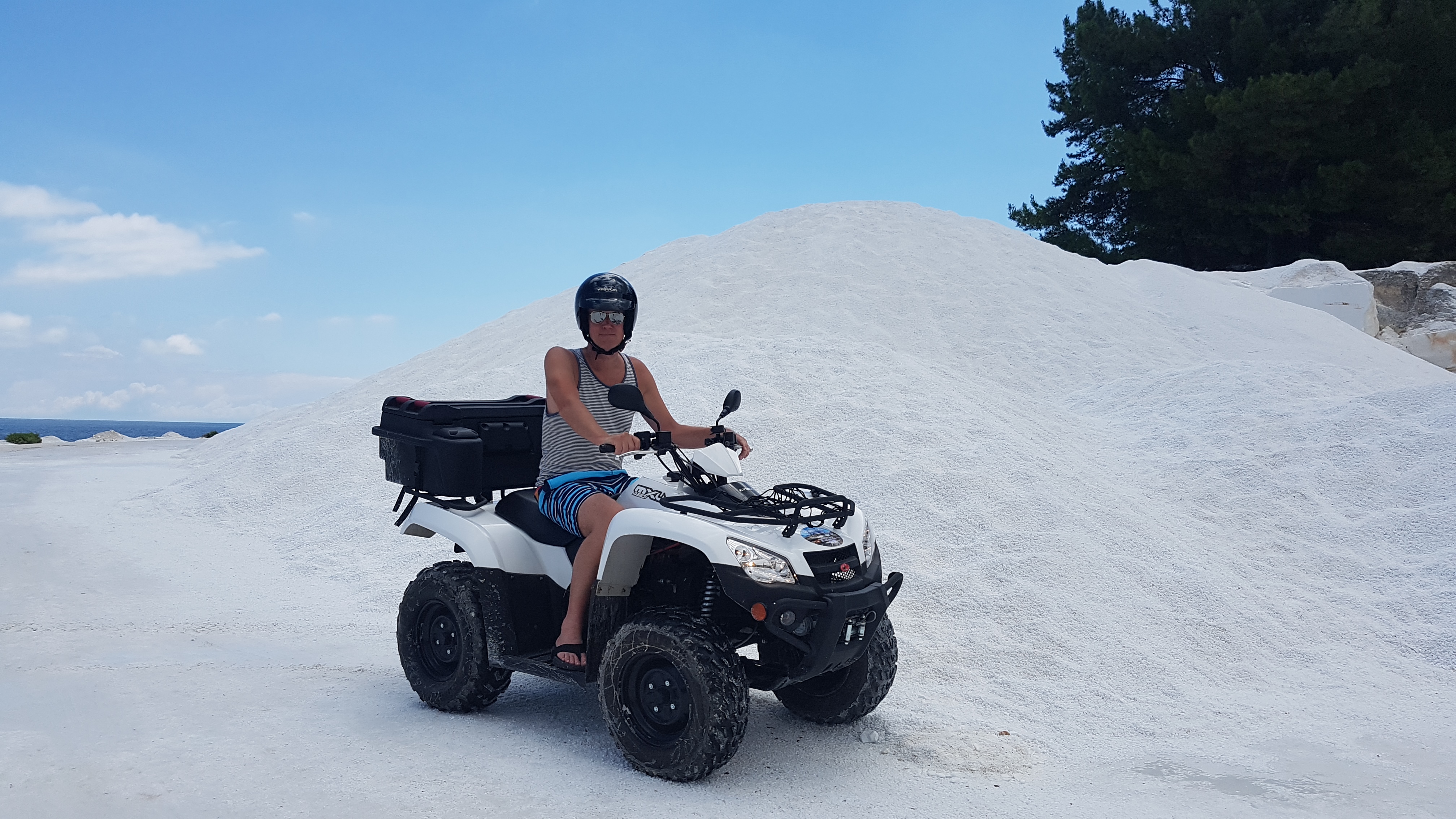 Efter ett par vespa dagar med massor av turer hyr vi oss en jeep istället inför dom längre sträckorna…..först ut besöker vi Plomari 👇