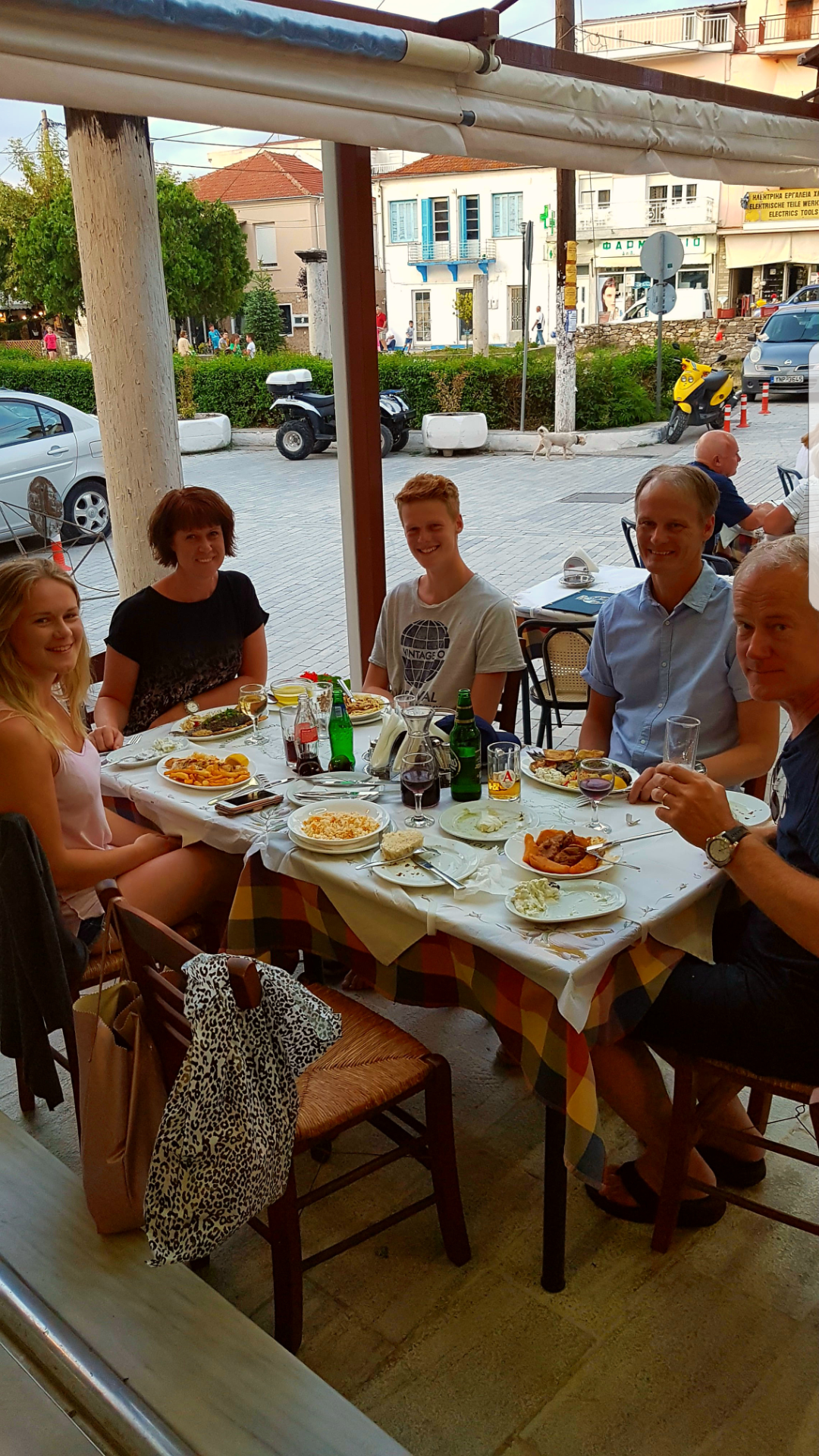 En annan kväll äter vi hemma på våran gata i stan på ”Metaxi Mas”👇