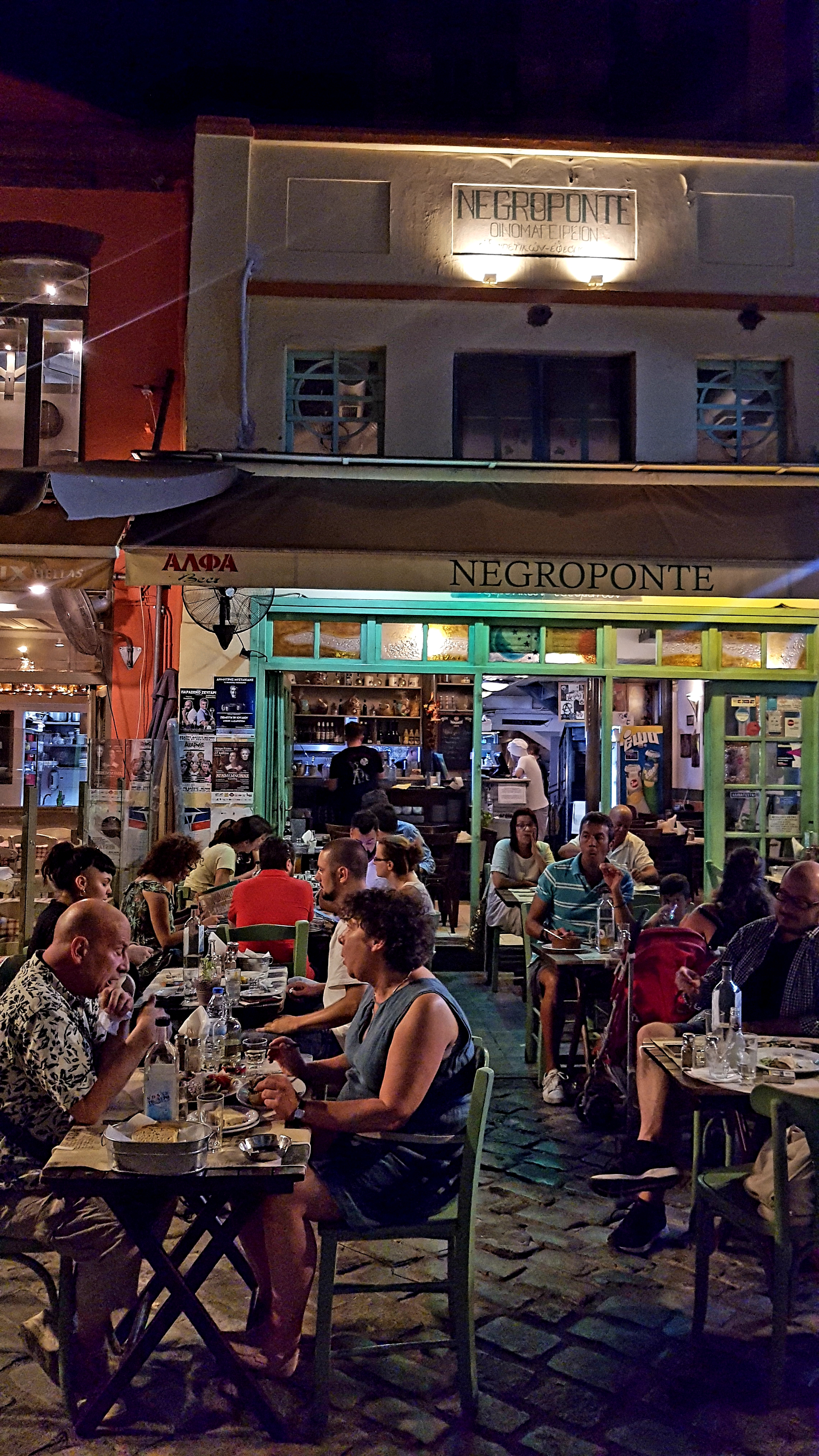 Tillbaka i byn Agios Nikitas på kvällen & dags för mat igen……