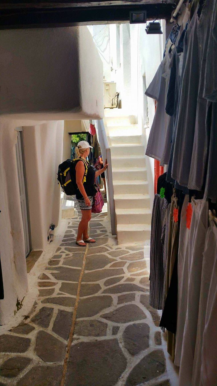 Choran är rätt så kuperad med slingrande små smala vitkalkade gator som ömsom går uppåt & ömsom lite nedåt igen……..