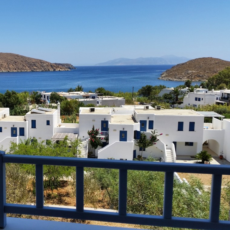 Vi har inte varit på Amorgos sen 2014 & då bodde vi i byn Katapola!!💙💙💙 (åter i sommar) På bilden nedan har vi precis checkat in på ”Porto Katapola Pension”……detta året åkte vi nästan utan att ha bokat & i högsäsong, så då kan man knappast klaga på dennan vyn va??? (Ni får bortse från mig då🤣🤣🤣)