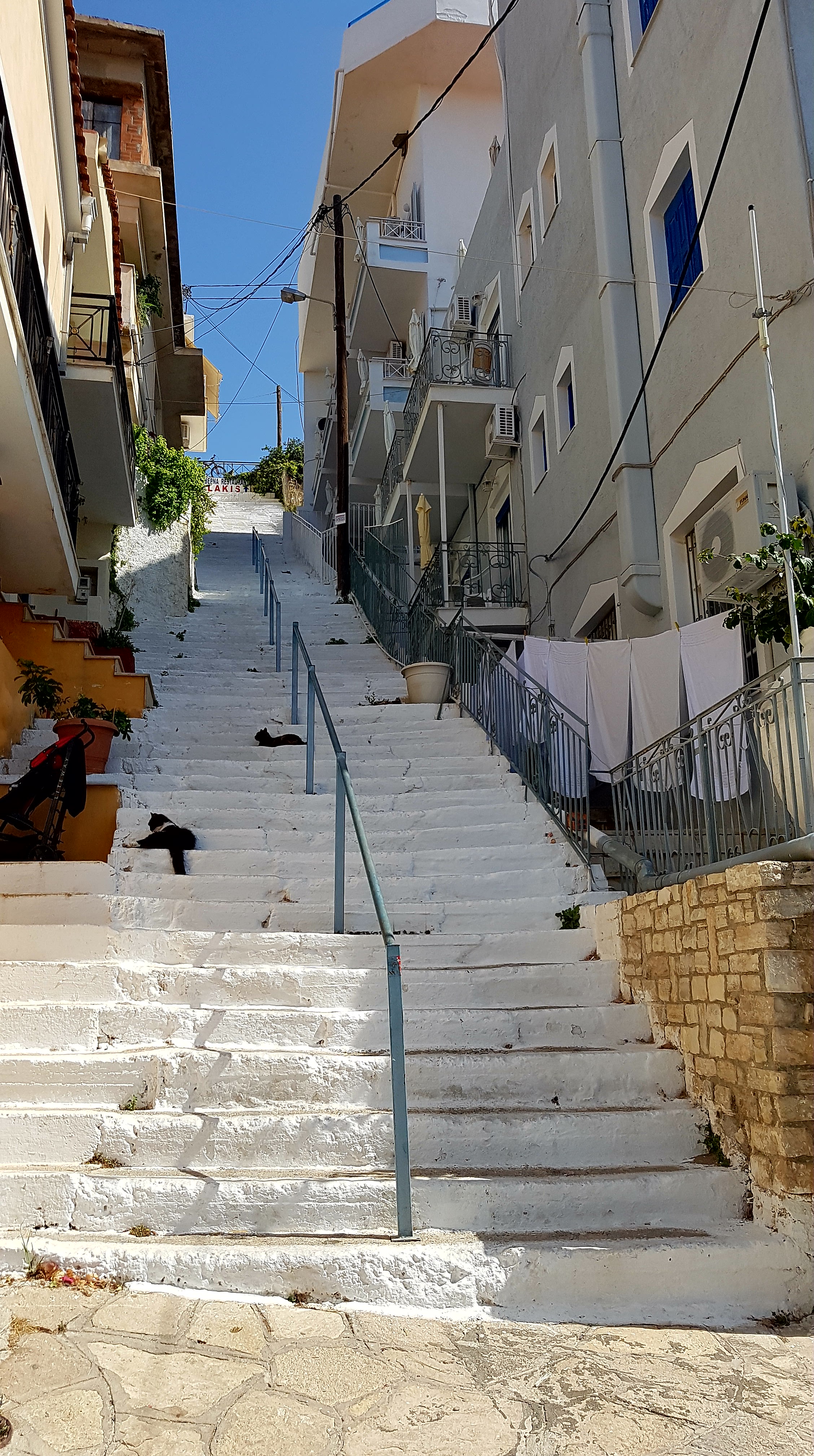 Näst sista kvällen behövs en fotopaus i alla trappor på vägen upp mot Lakis Taverna……..😂🙈😅