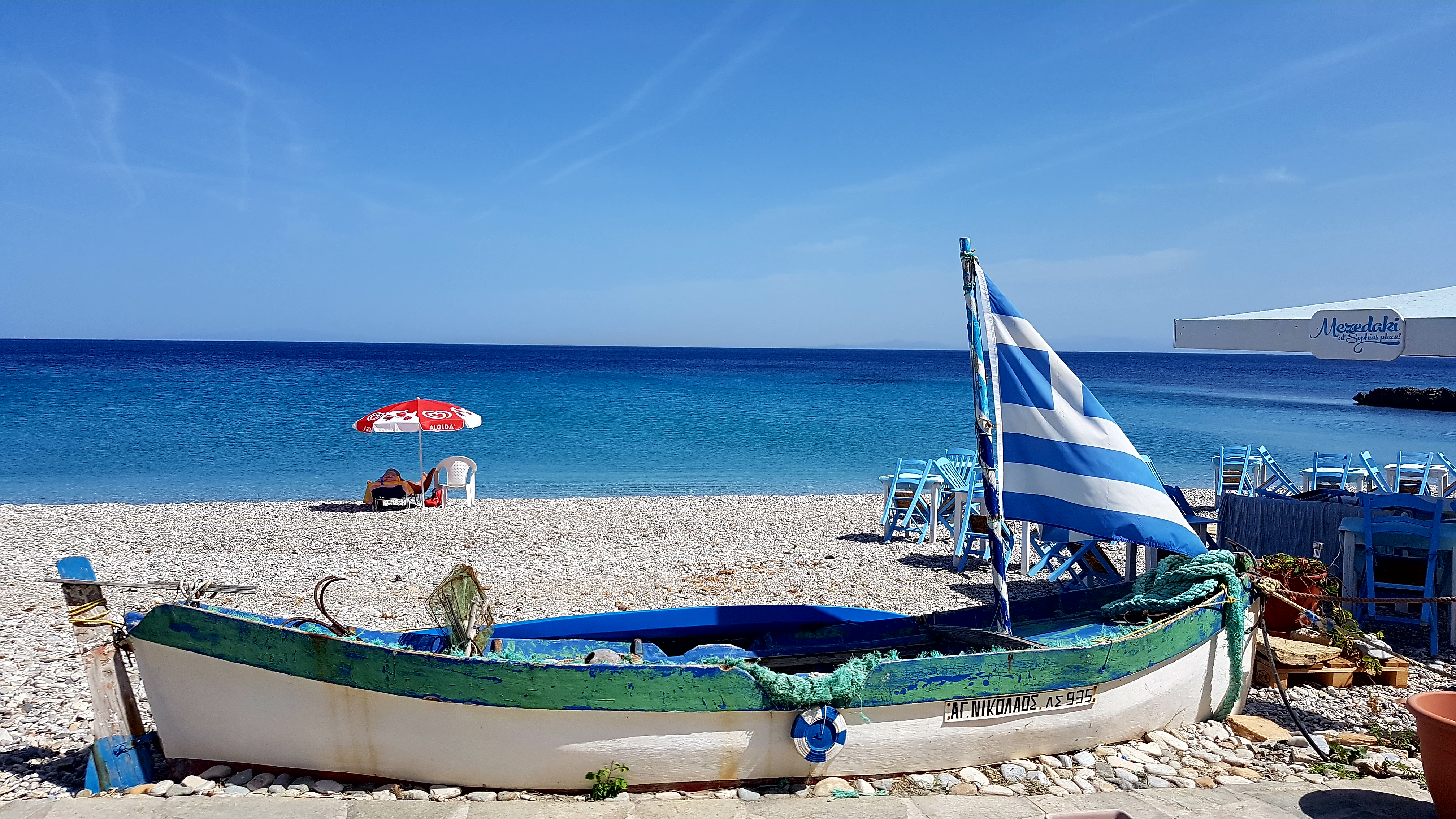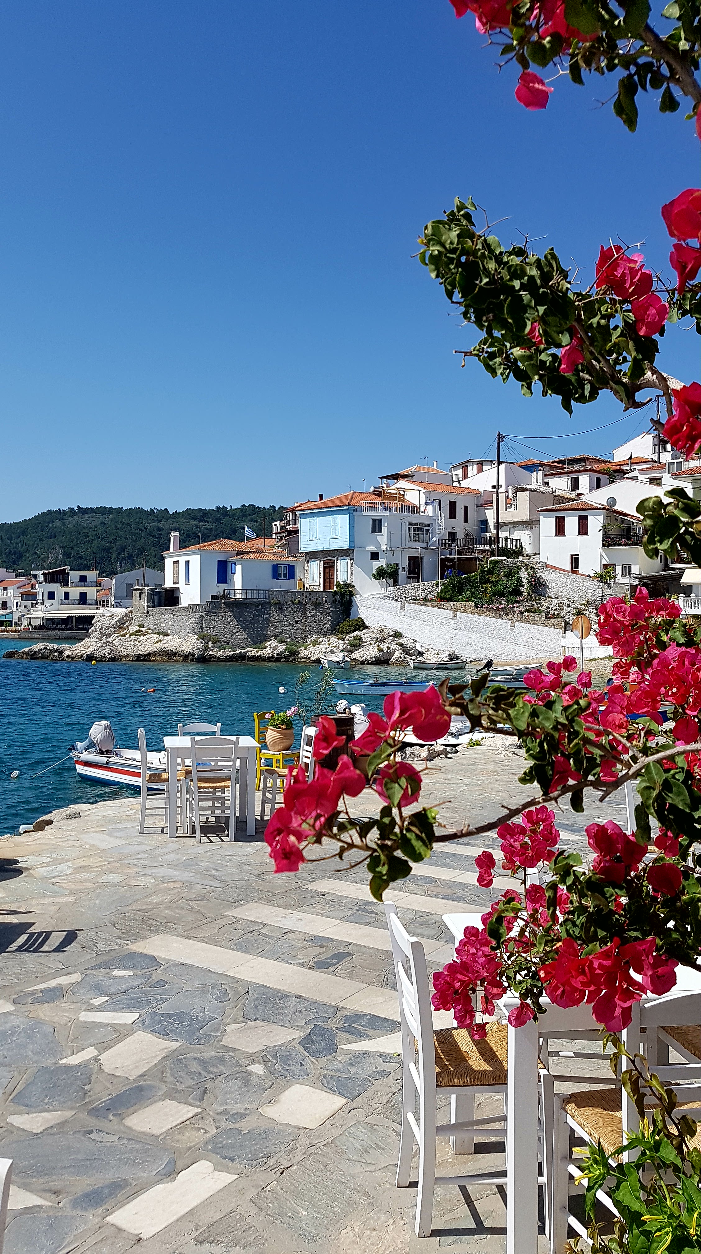 Efter en sanslöst goo lunch på en av dom mysiga tavernorna……..ja, då strosar jag omkring i ett par timmar här…..älskar detta lilla smultronställe!! Står & tittar på bra länge när en medelålders man håller på & hissa en ny flagga intill hamnen……så länge att han till slut skriker ”stå inte bara där o titta på, kom hit & hjälp mig ist”😅 Så tänk på detta om ni besöker byn snart att jag faktiskt hjälpte till i säkert en kvart för att få nya flaggan hissad!!!