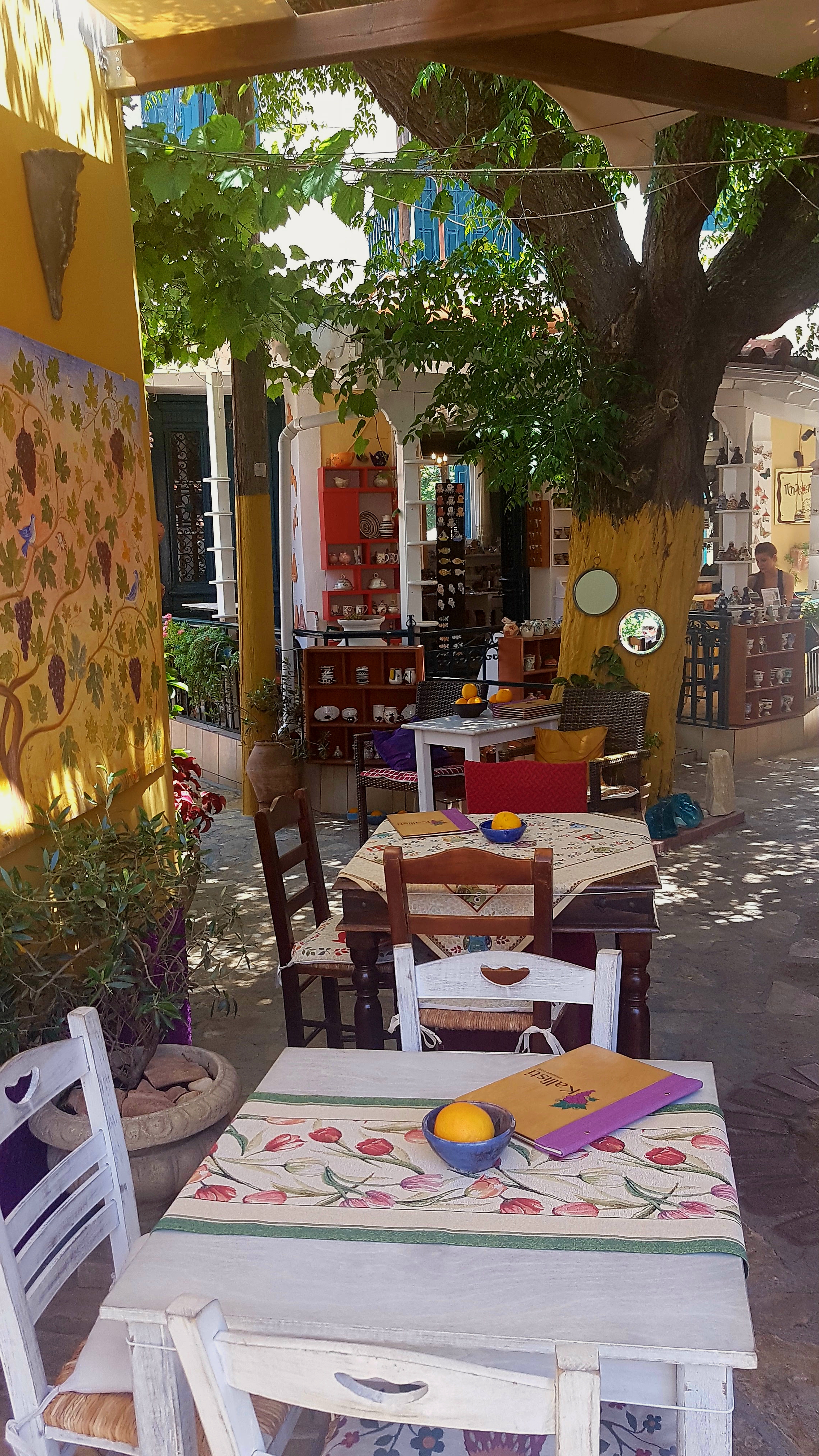 En av kvällarna byter vi ut vår altan & tar en vätskepaus på mysigaste lilla tvärgatan i Pythagorion…….👇