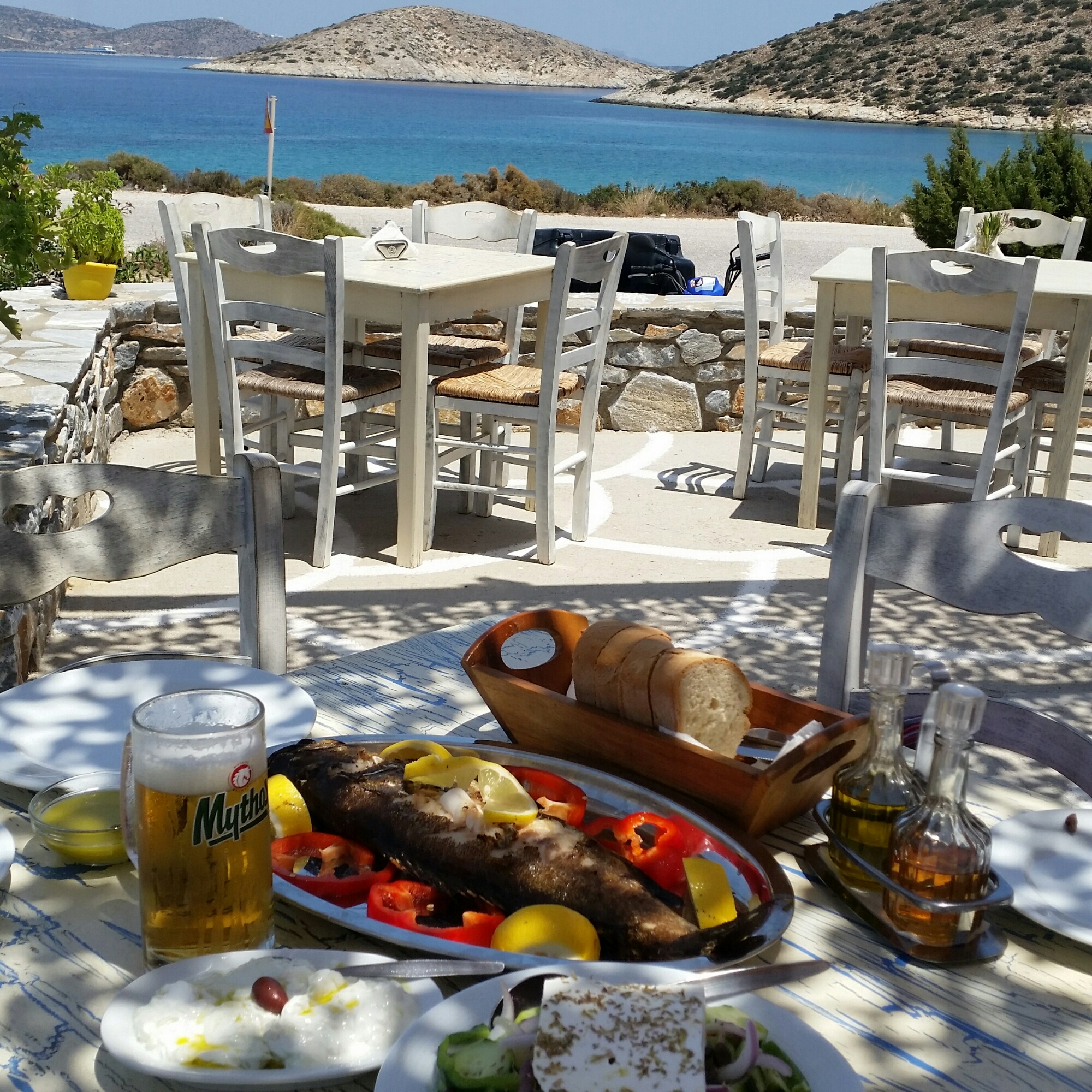 Vi äter lunch på den dyra tavernan men ojojoj såå god mat det var…