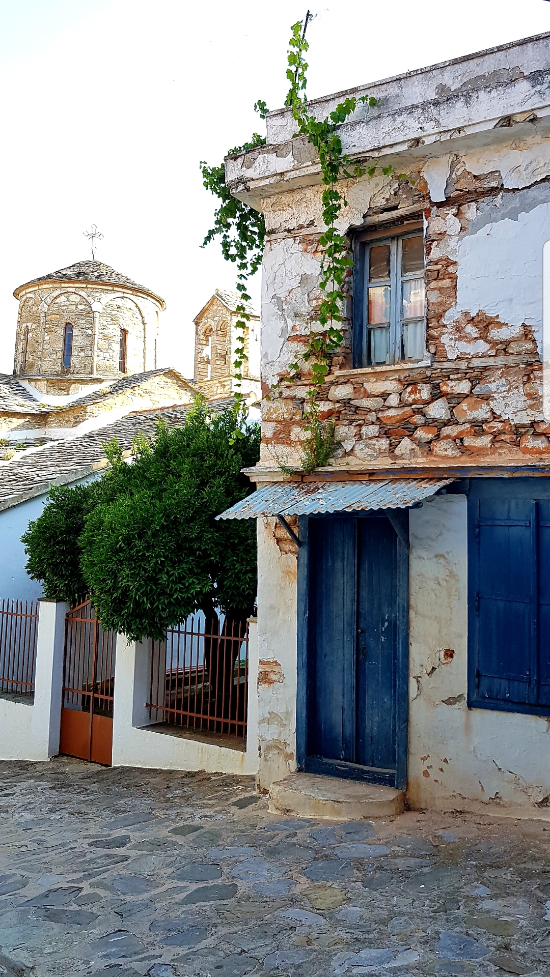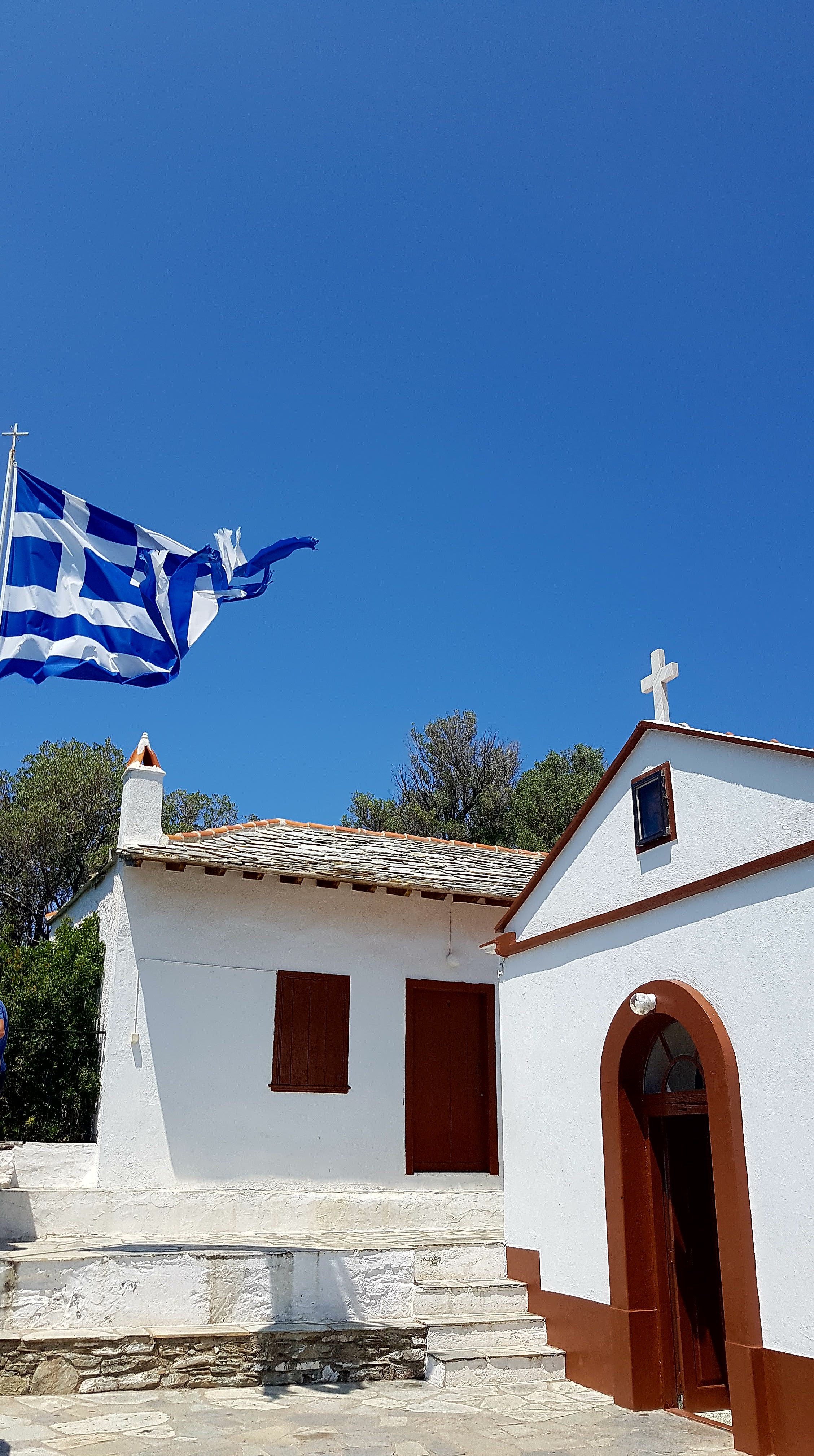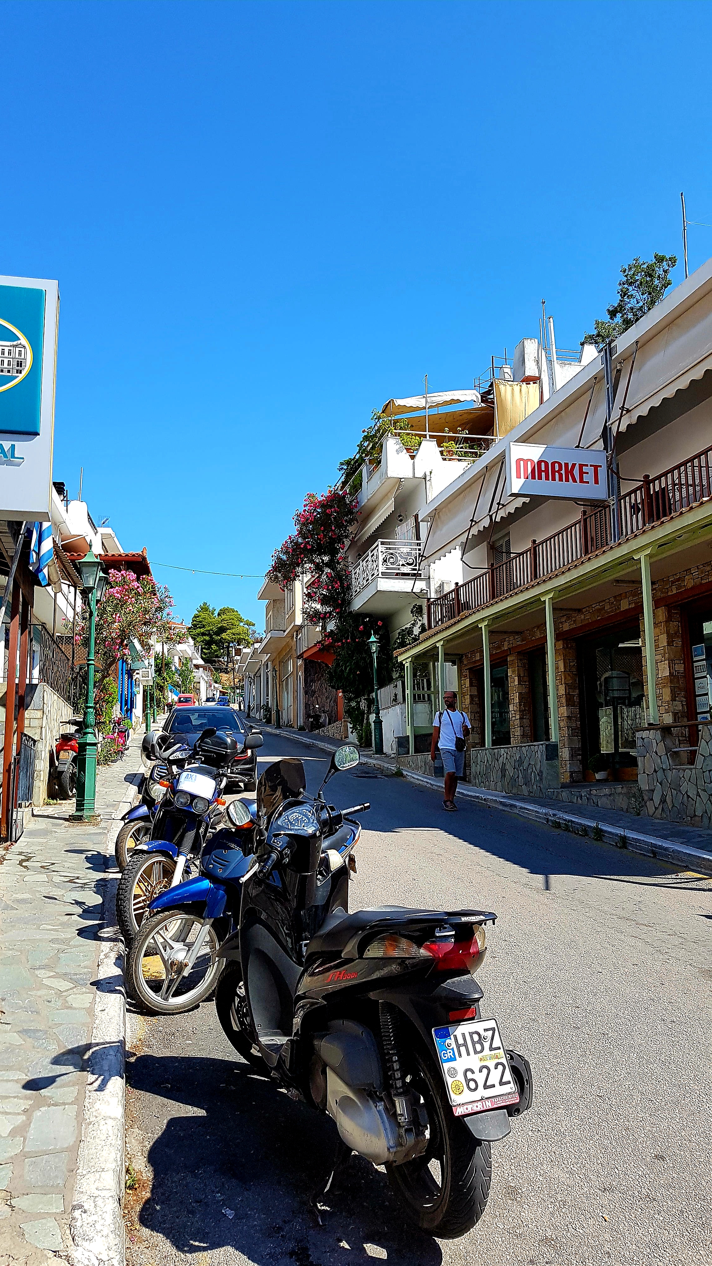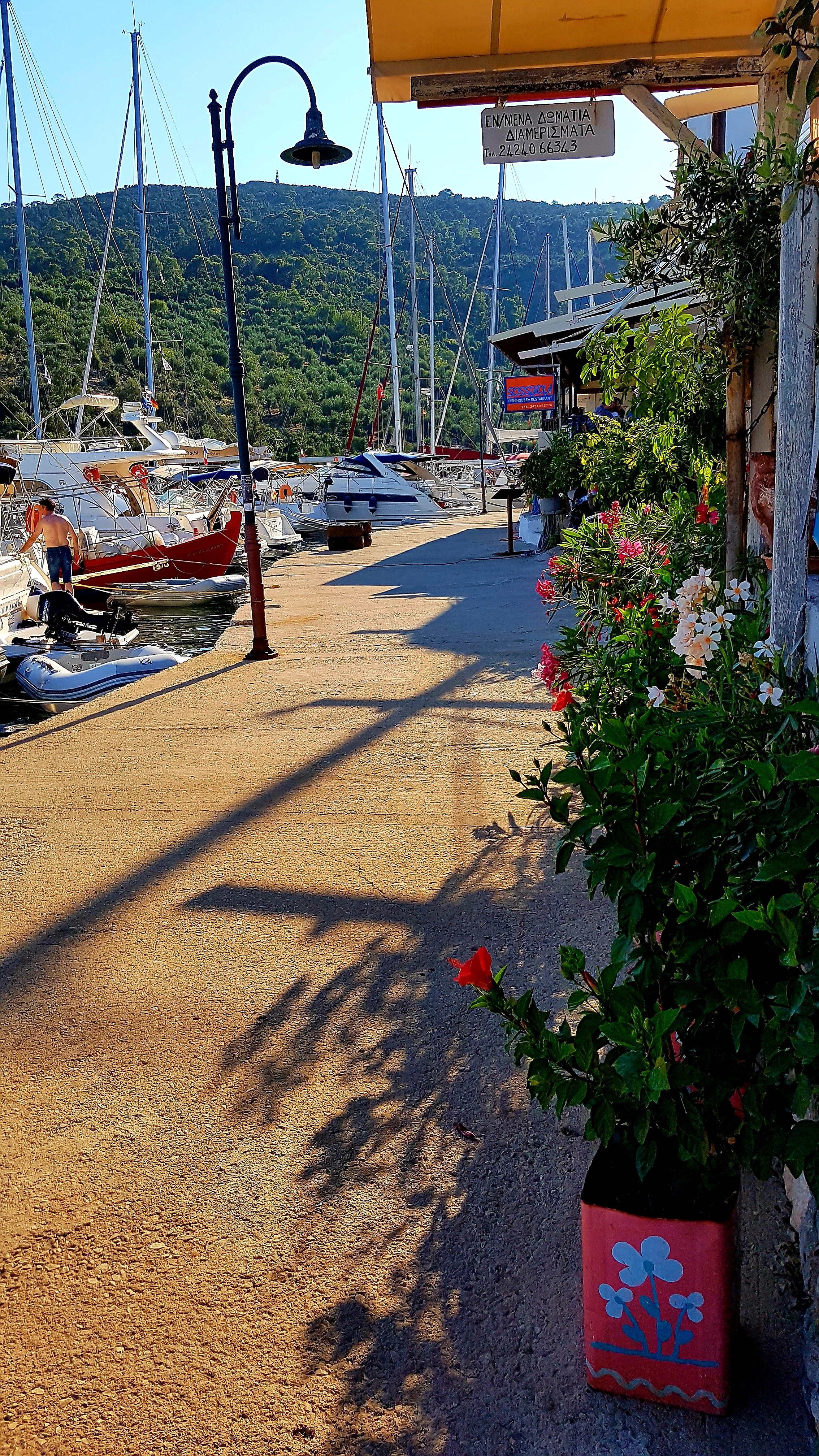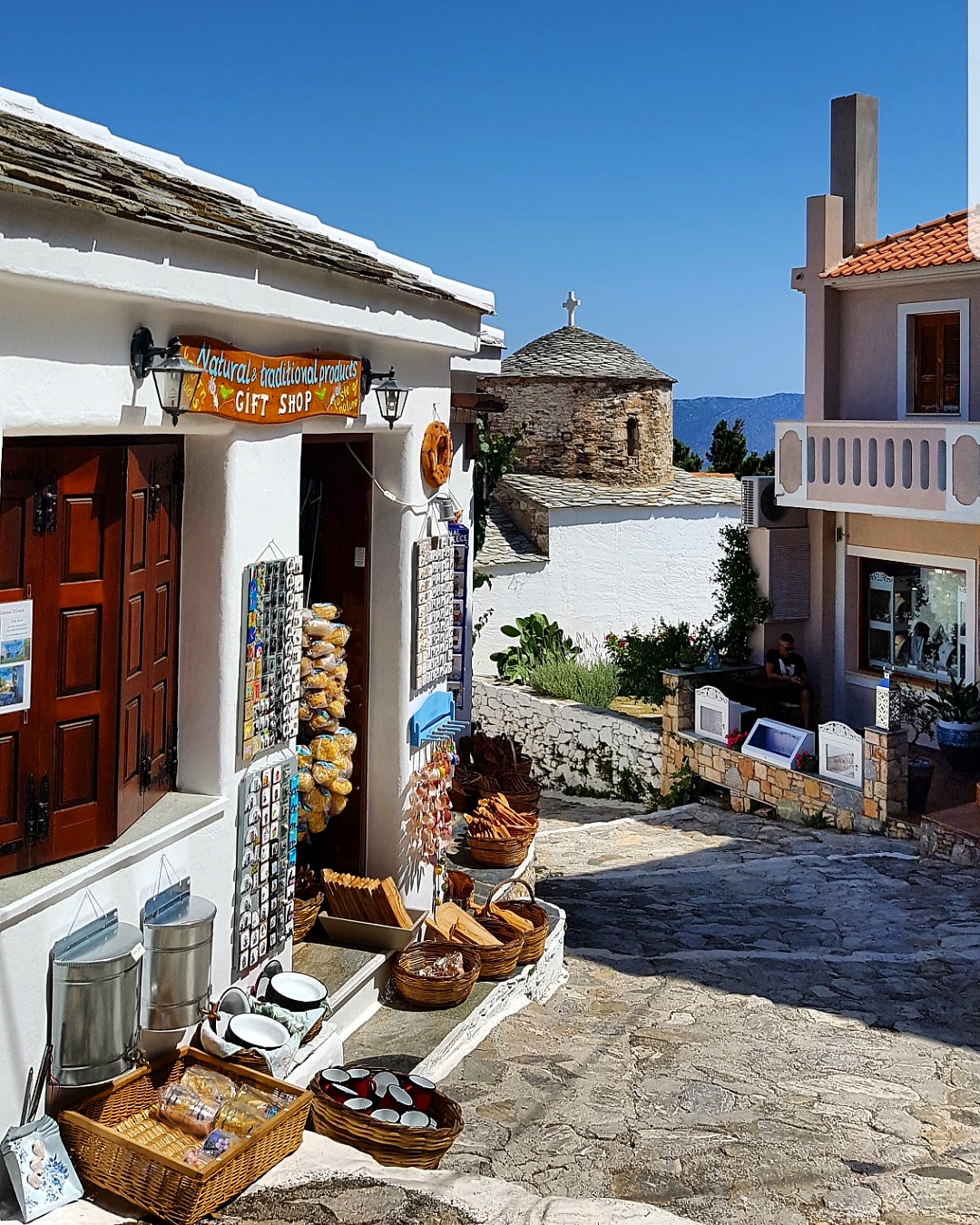 Vi hittade alltså ett urmysigt litet pensionat i dom gamla delarna av Skiathos stad högt upp i ”Plakes” & området utanför är helt bedårande💙som att vrida tillbaka klockan 30år i tiden. Gubbar o gummor sitter tidig morgon & sen kväll utanför sina små boenden & med sina pyttesmå trädgårdar rakt över gränden & hälsar glatt. Detta lilla område missade vi helt när vi var på Skiathos sist tyvärr men kommer 100% bo här igen.