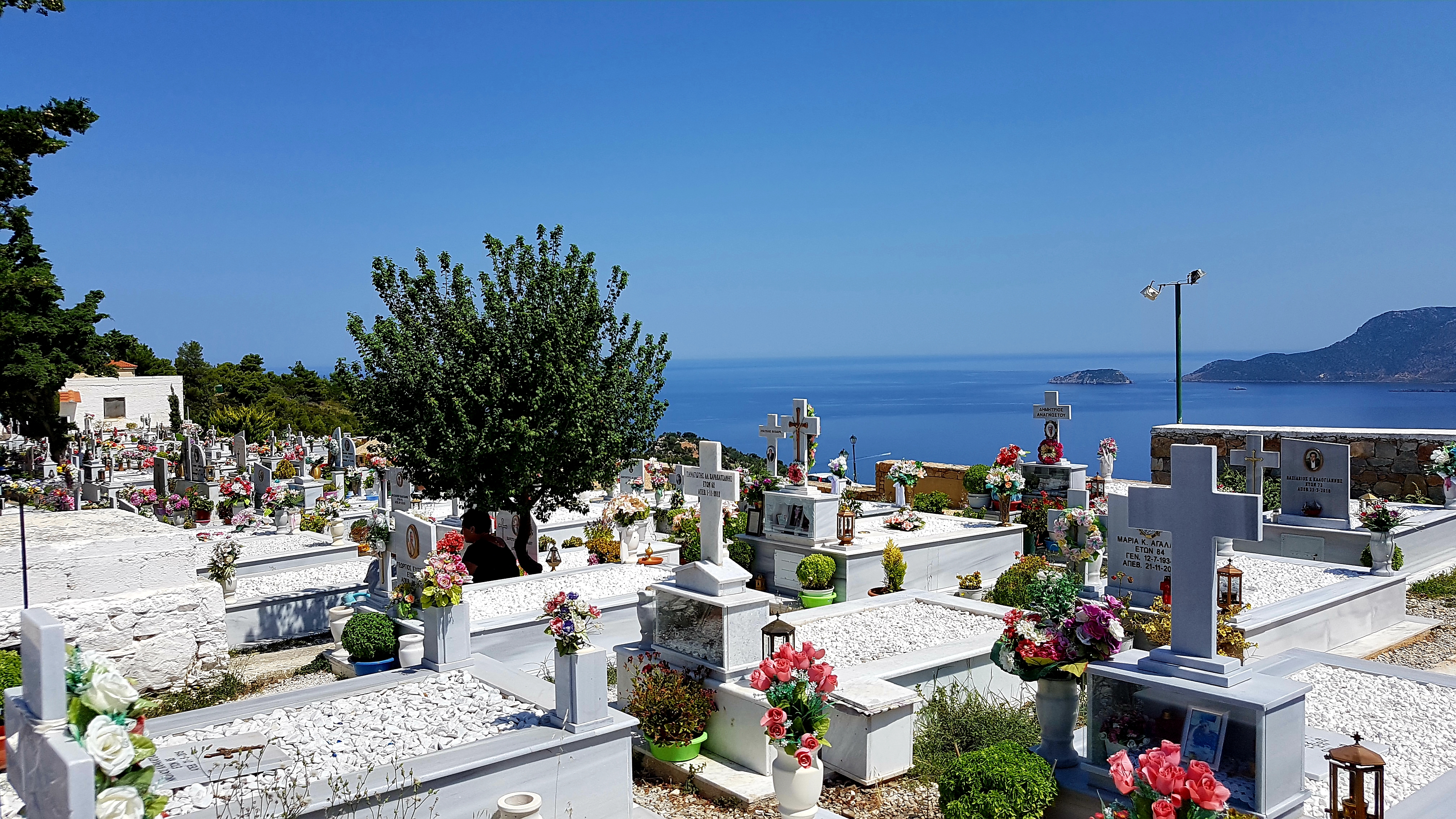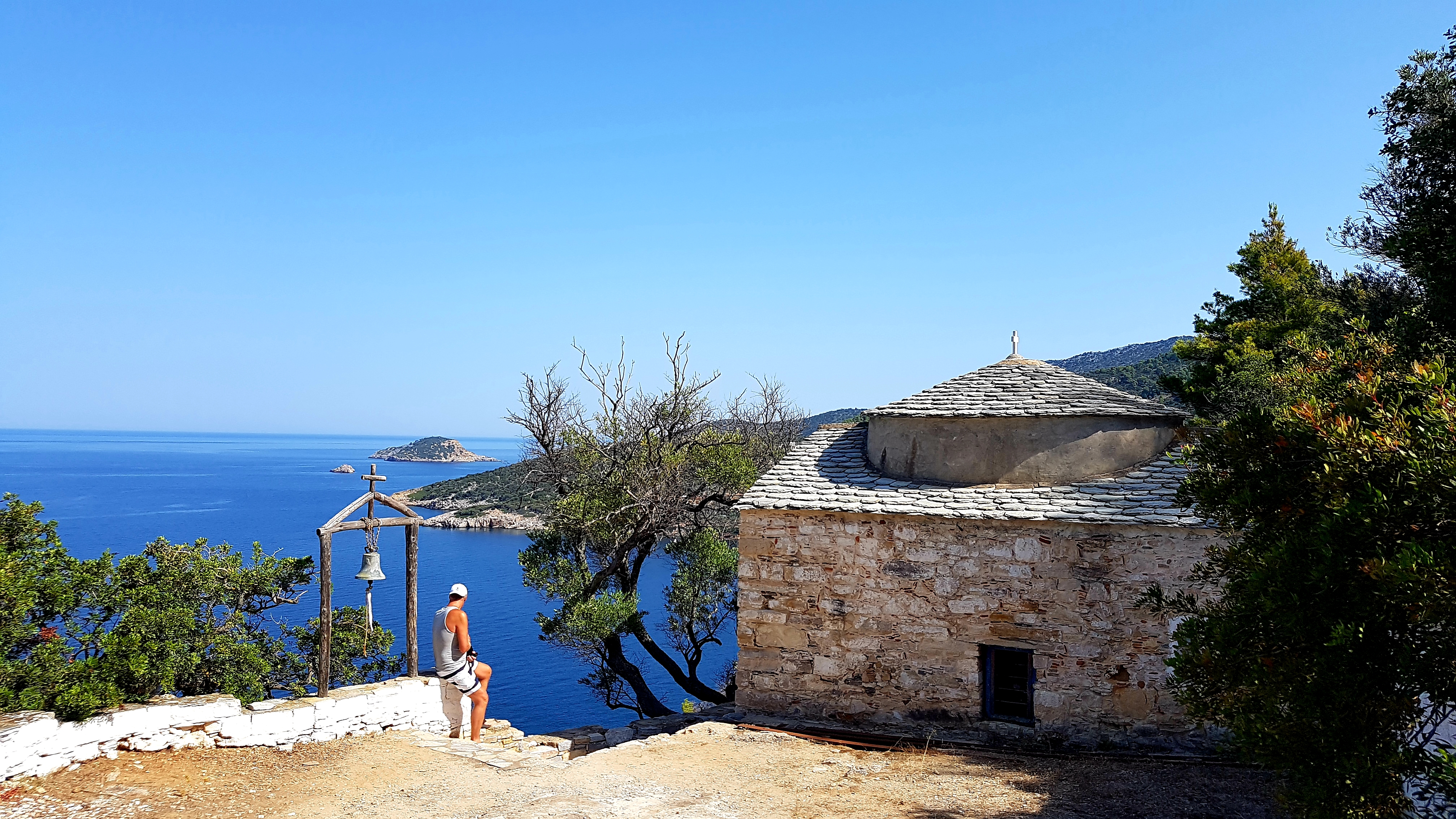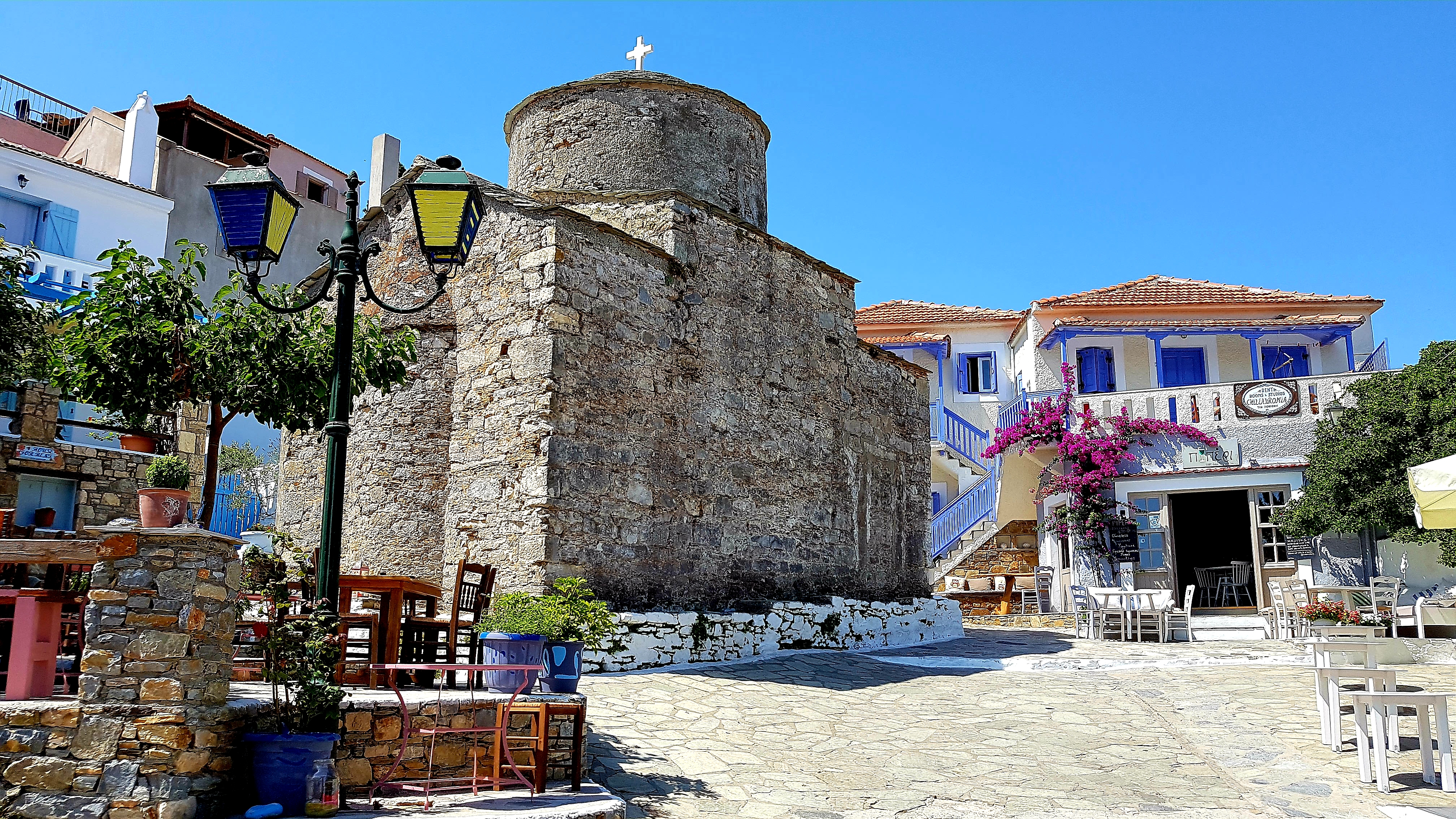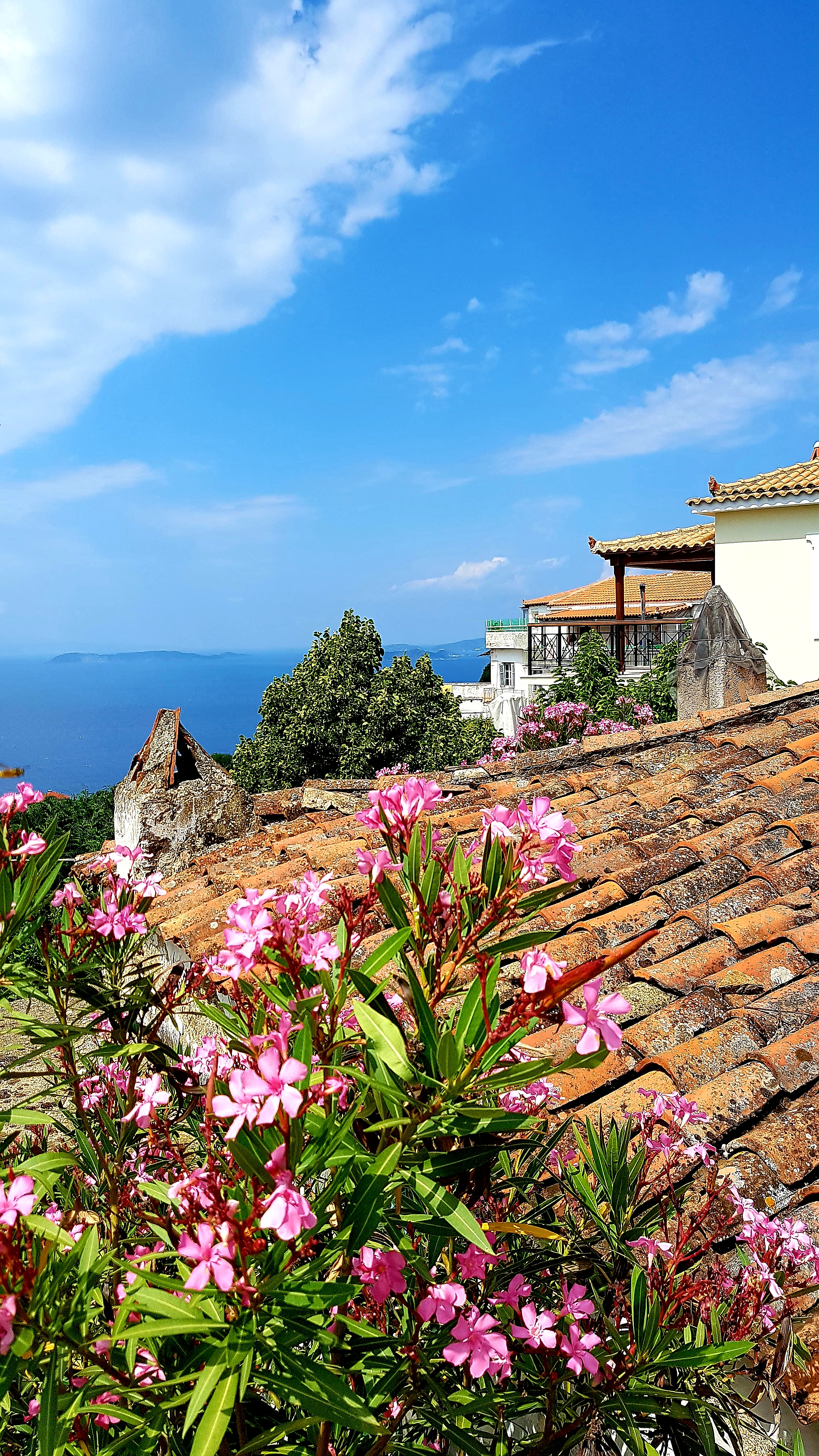 Vi hittade alltså ett urmysigt litet pensionat i dom gamla delarna av Skiathos stad högt upp i ”Plakes” & området utanför är helt bedårande💙som att vrida tillbaka klockan 30år i tiden. Gubbar o gummor sitter tidig morgon & sen kväll utanför sina små boenden & med sina pyttesmå trädgårdar rakt över gränden & hälsar glatt. Detta lilla område missade vi helt när vi var på Skiathos sist tyvärr men kommer 100% bo här igen.