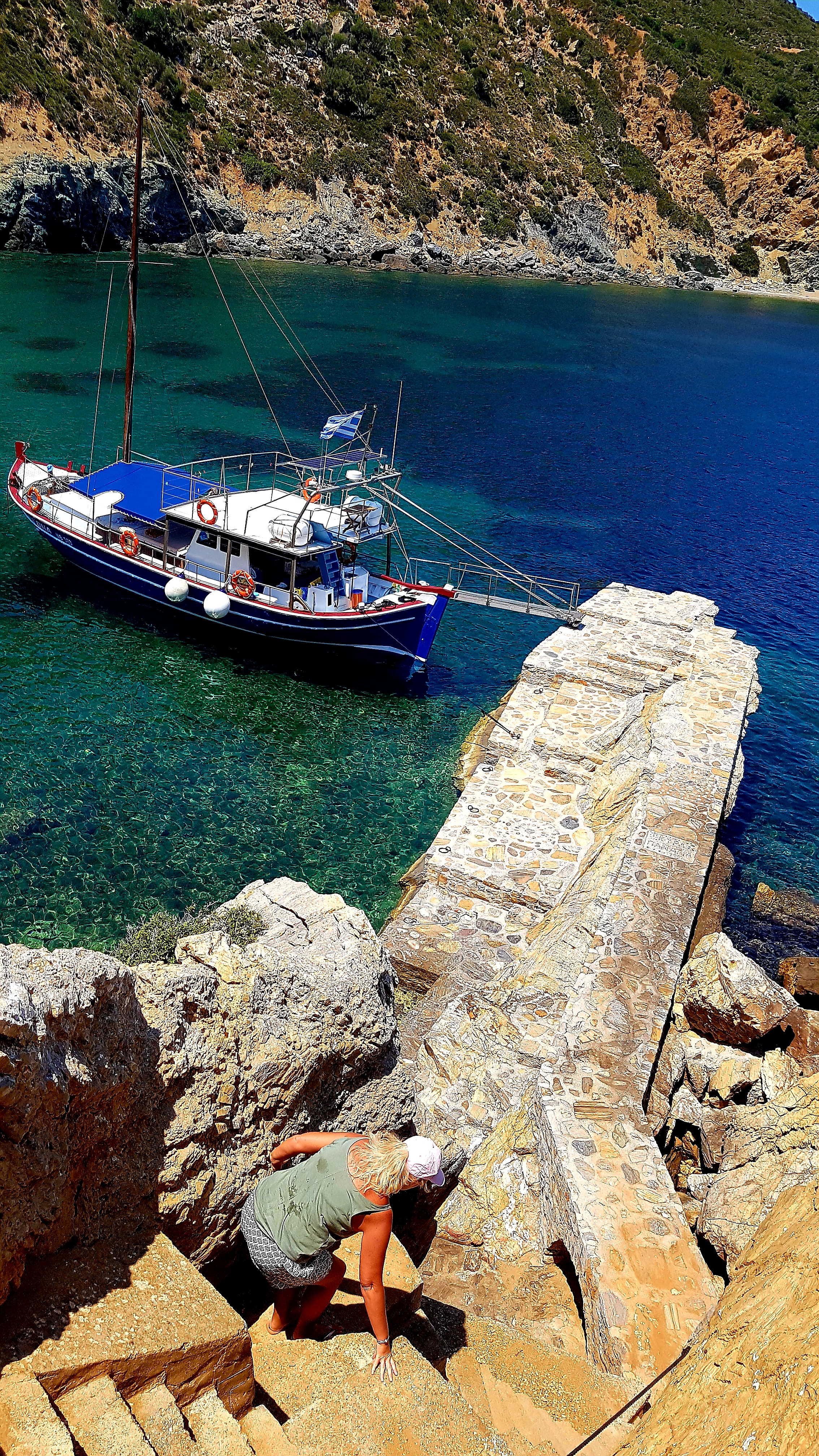 Resan börjar närma sig sitt slut & vi har bokat båttur på vår sista dag…..Tyvärr blåste det nåt enormt den dagen o båten kunde inte lägga till på 2 av dom tänkta ställena…..1a nedanför Kastro👇fick utebli…..
