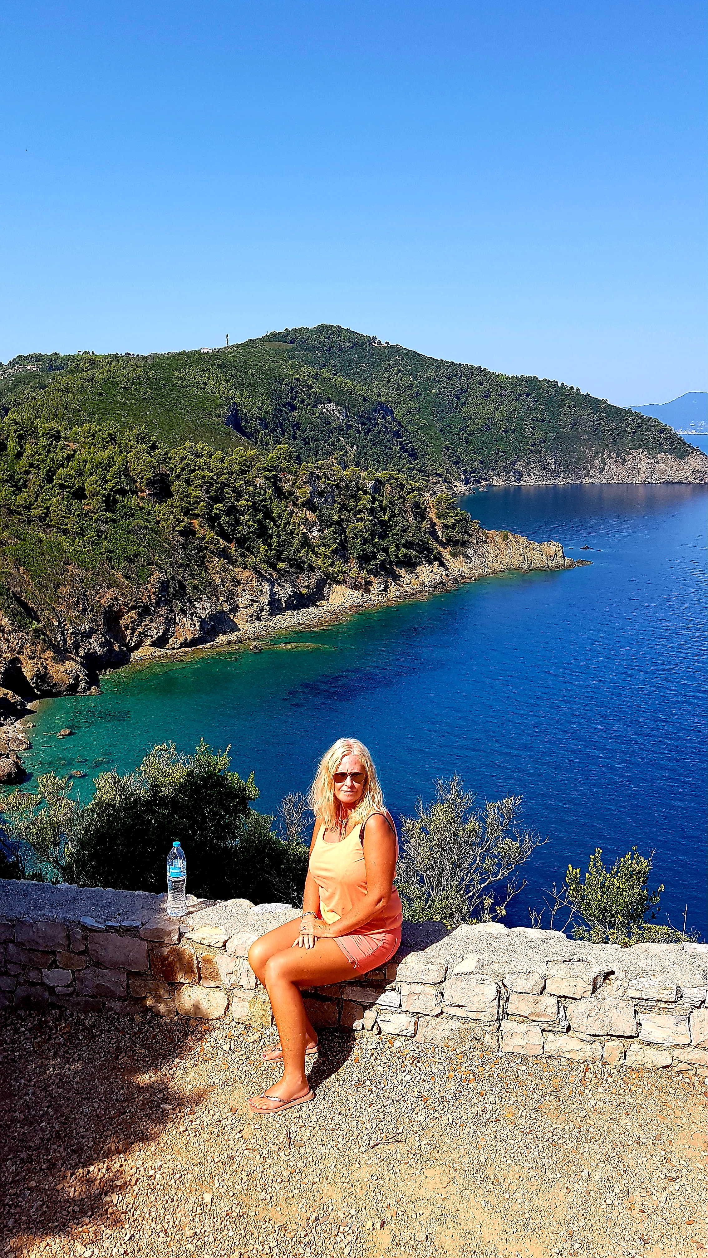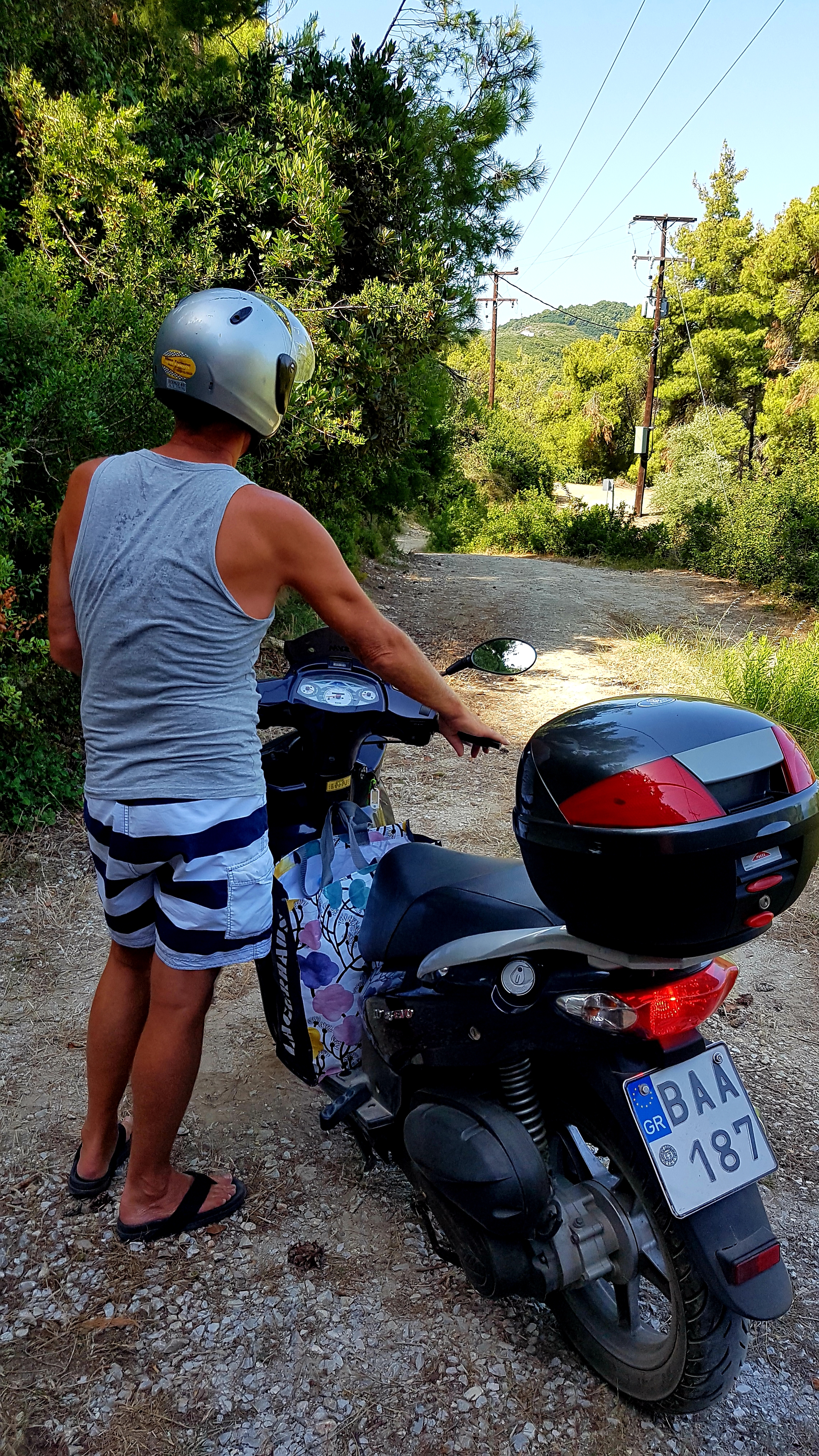 Vi hyrde såklart en scooter för att komma till andra sidan av ön där dom bästa stränderna finns (enl mig😉) Jag har varit här tidigare men inte sonen……Vill man inte hyra vespa utan tar bussen så kan man kliva av vid hållplats nr 23 & får då promenera ca 30 min genom en pinjeskog🌿